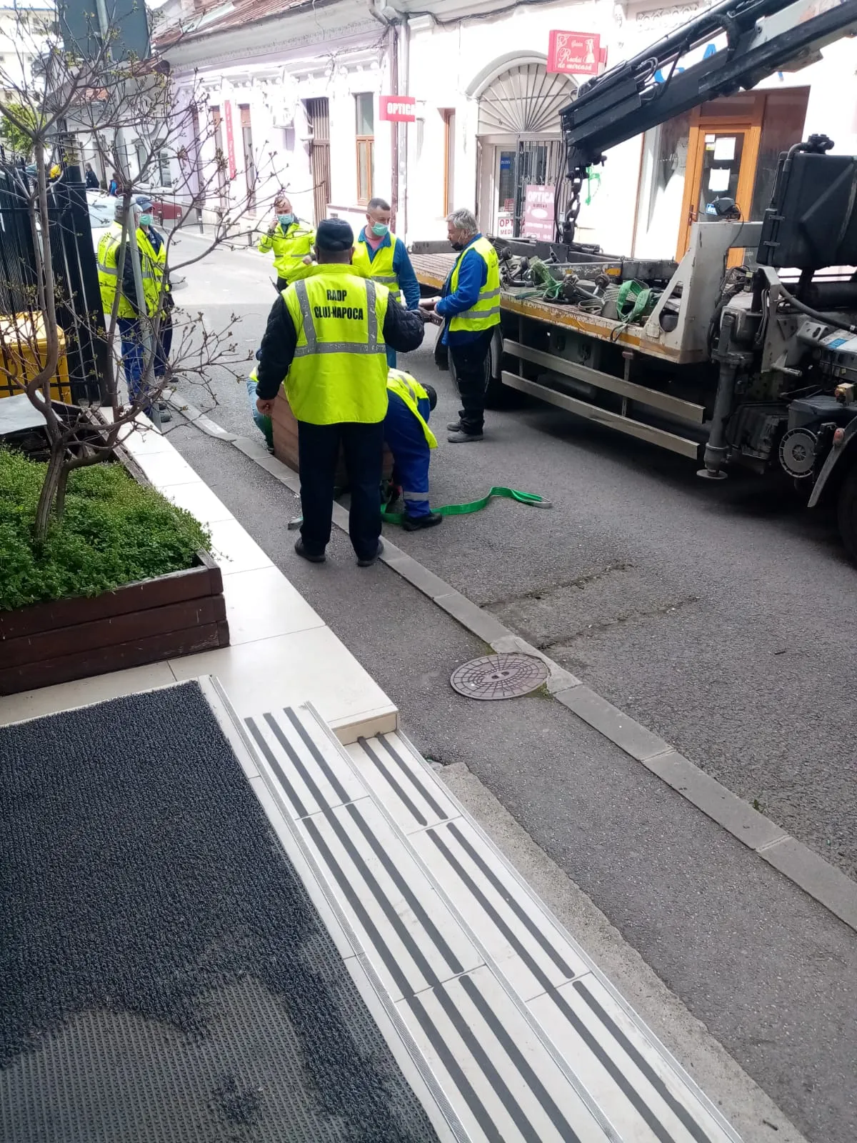 Poliția Locală Cluj-Napoca a precizat că au fost făcute controale în fiecare zi, în ultima săptămână, după ce s-a constatat că o jardinieră părea abandonată. Aceștia spun că nu au găsit niciun reprezentant cu care să discute, așa că s-a decis eliberarea carosabilului de ”gunoaie”. ”Cei de la acest imobil trebuie să se prezinte la Primărie, să depună actele necesare și să primească autorizații pentru a monta standurile de bicicletă și jardinierele. De o săptămână nu s-a reușit contactarea lor, pentru a le fi adus la cunoștință acest lucru. Clădirea a fost găsită închisă. Pe domeniul public nu pot sta astfel de obiecte, care par abandonate. Lucrurile vor fi reglementate pe baza prevederilor legale de la nivel local”, au precizat cei de la Poliția Locală Cluj-Napoca.