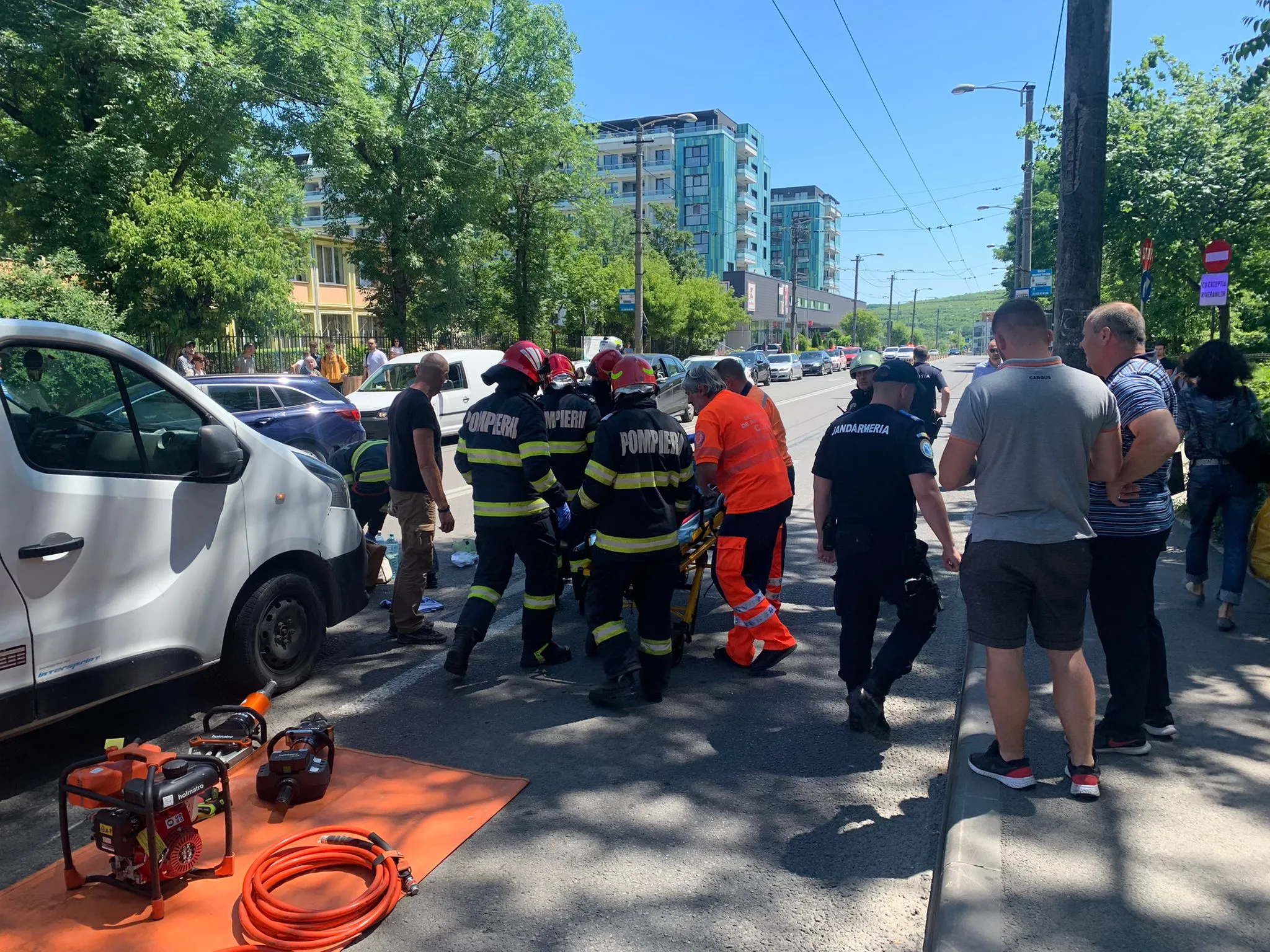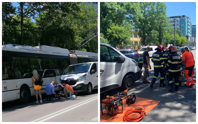 Pompierii din cadrul Detașamentului 1 Cluj-Napoca au intervenit pentru a oferi sprijin unei femei care a fost implicată într-un accident rutier. Apelul de urgență a venit în jurul orei 13:23, iar salvatorii au găsit la fața locului o victimă care era prinsă parțial, cu membrele inferioare, sub o autoutilitară.