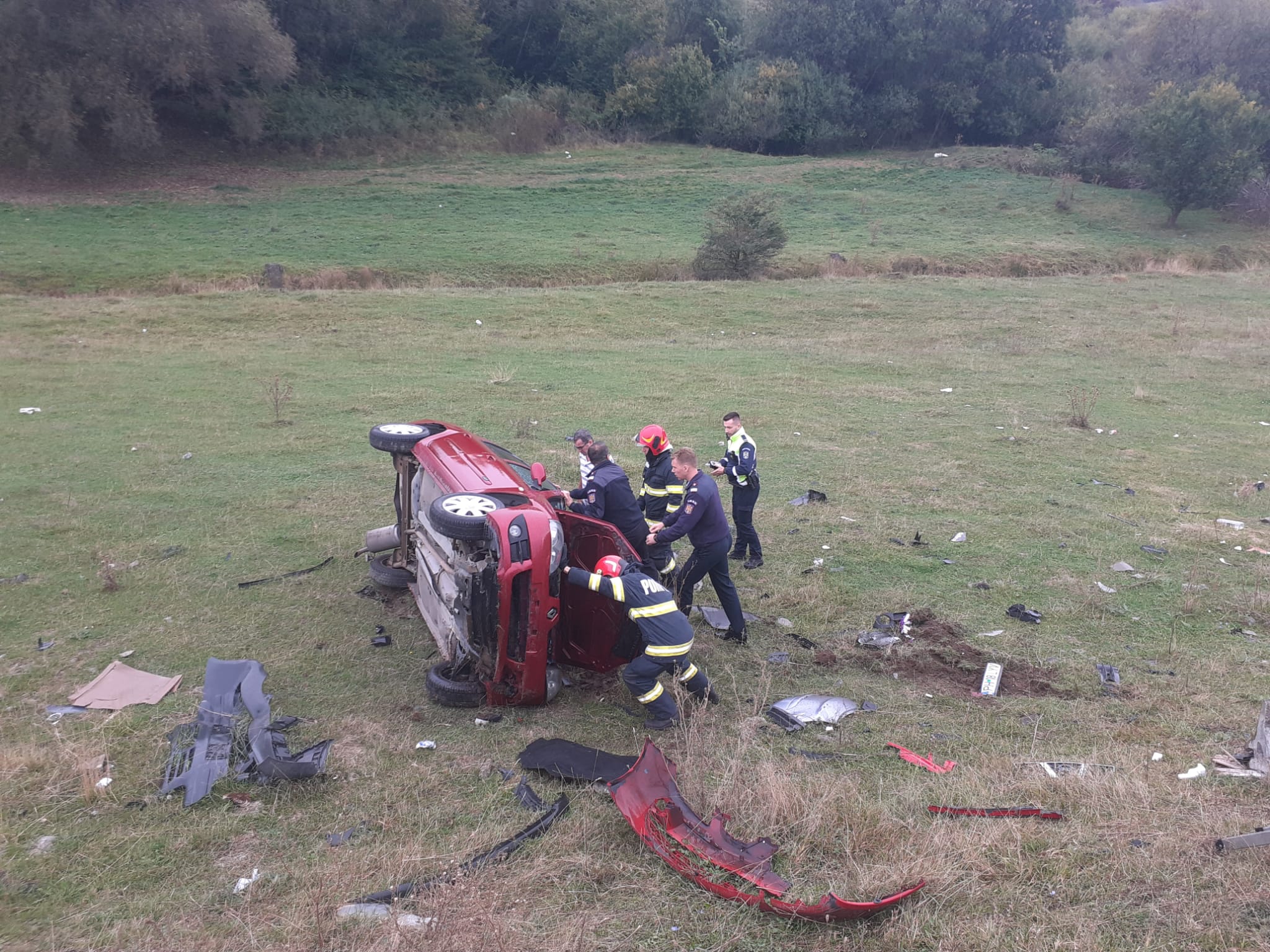 Accident Cluj- O mașină s-a răsturnat la Izvoru Crișului. Victima a avut noroc cu doi pompieri ISU Cluj aflați în zonă, care au intervenit rapid FOTO