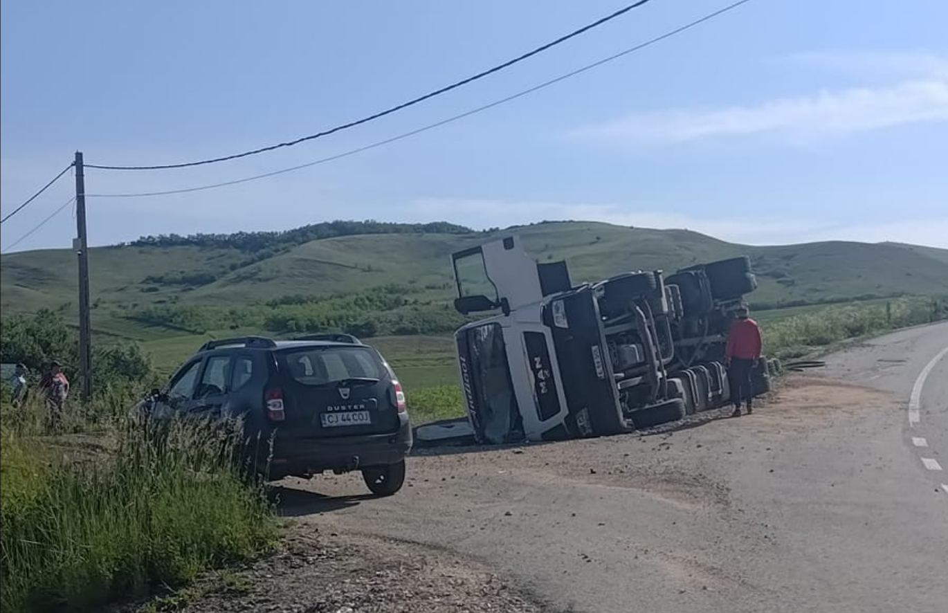 În această dimineață, un TIR s-a răsturnat la ieșirea din localitatea Cojocna, județul Cluj. Se pare că incidentul a avut loc într-o curbă periculoasă, cunoscută pentru accidentele frecvente datorate vitezei și lipsei de vizibilitate.