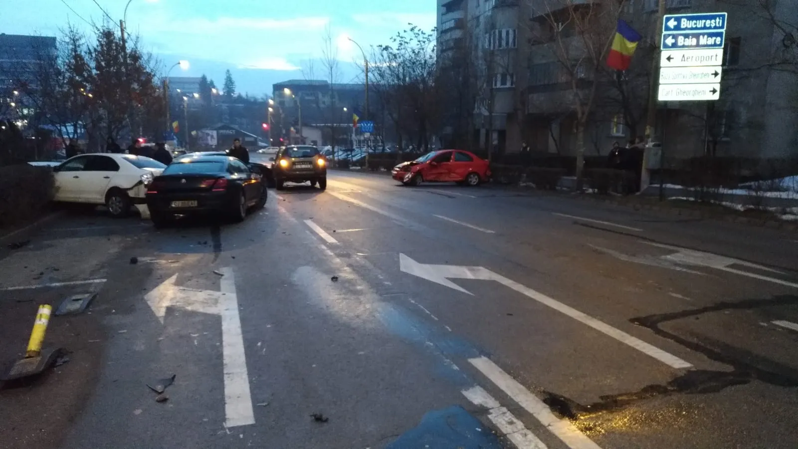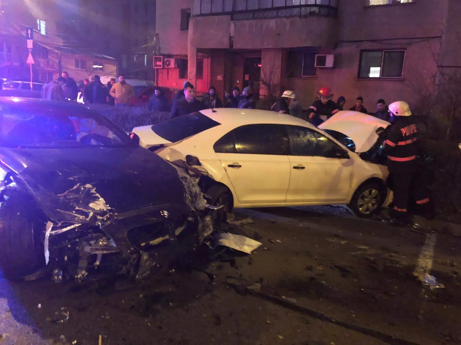 Din primele informații, trei autoturisme au fost implicate în incident, iar alte două mașini parcate au fost avariate.