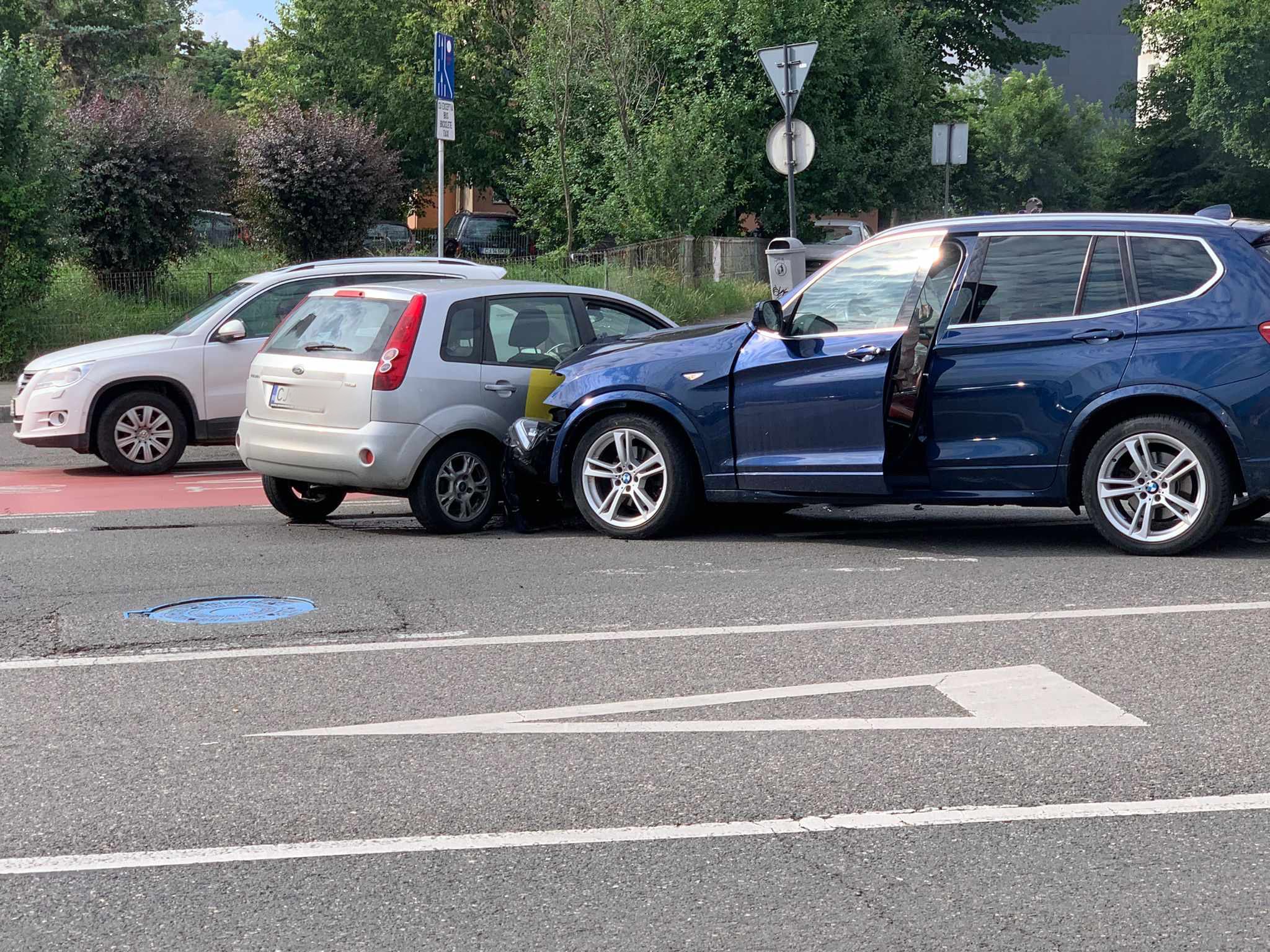 Șoferul Fordului s-a încadrat bine, pentru a face stanga, dar nu a acordat si prioritate BMW - ului. Avariile sunt semnificative, dar nimeni nu a părut a fi rănit.
