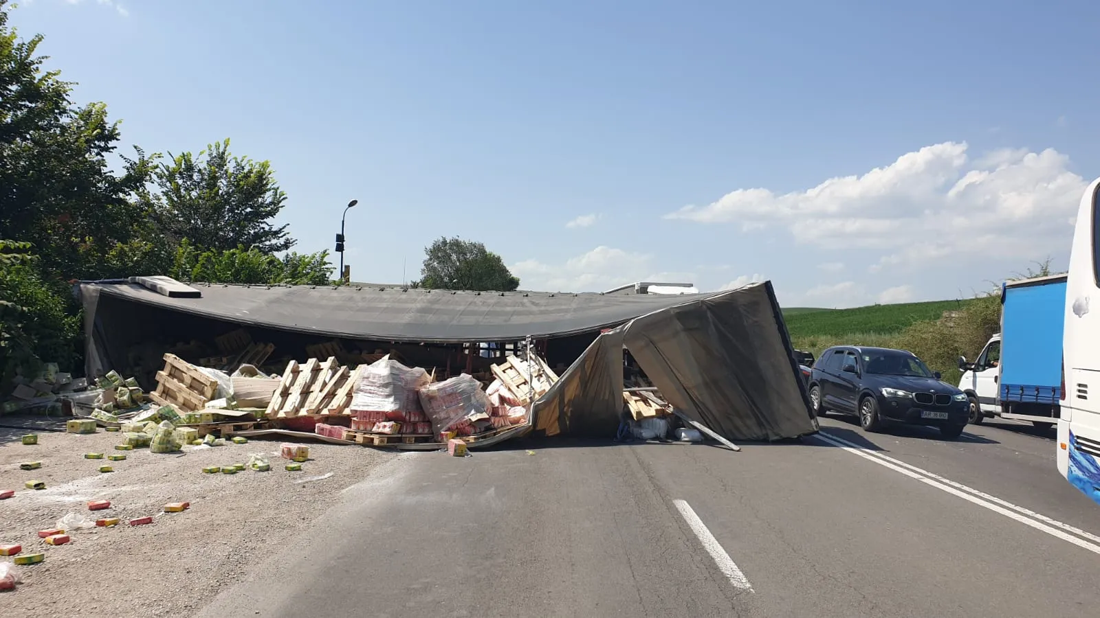 În urma impactului, TIR-ul a intrat pe sensul opus, unde a acroșat un alt autoturism, apoi s-a răsturnat pe carosabil.