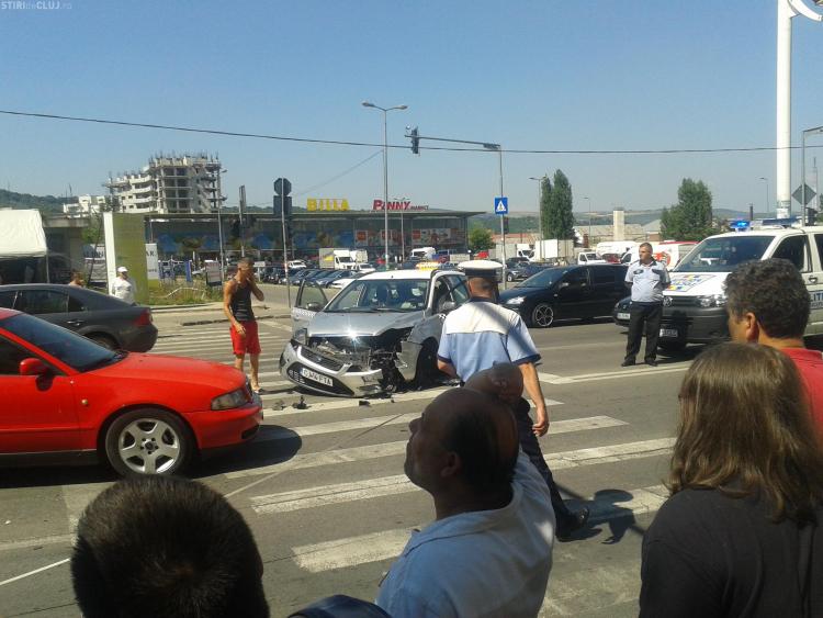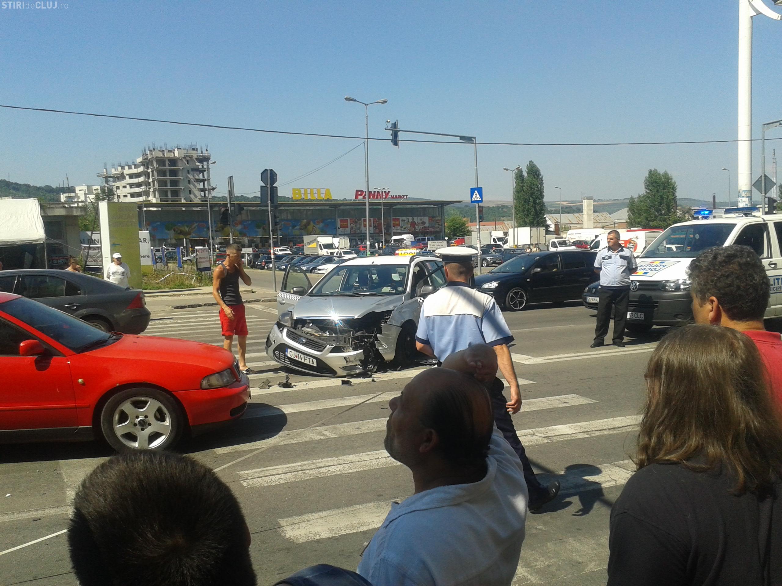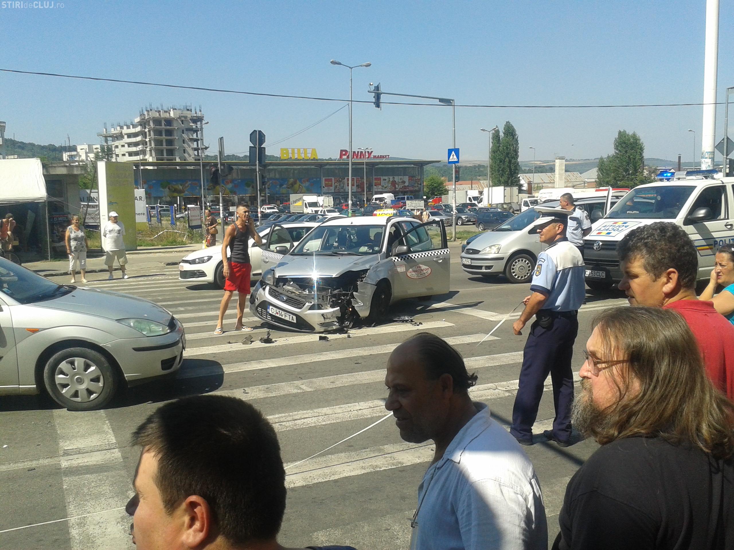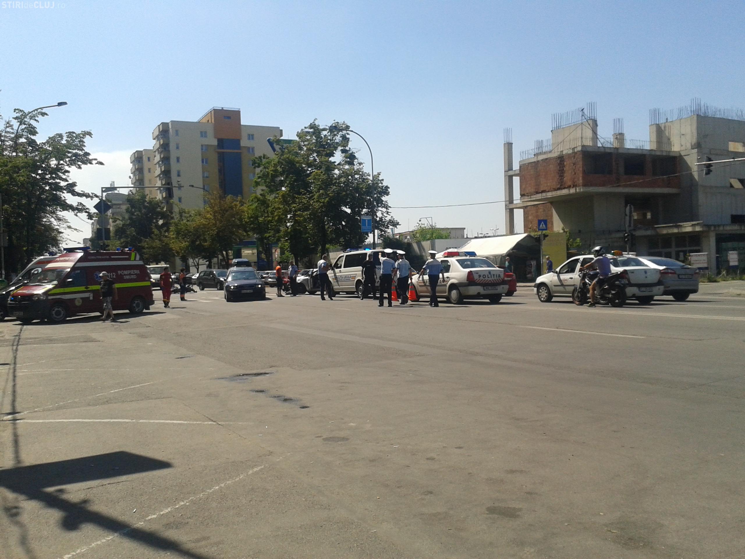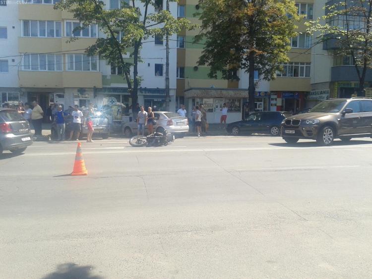 Accident cu două victime în Mănăștur! Un taximetrist neatent a vrut să întoarcă și a intrat direct într-o motocicletă FOTO