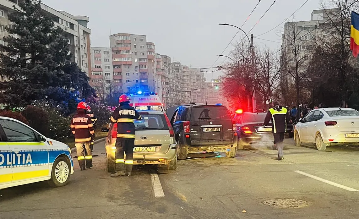 Un accident în care au fost implicate mai multe autoturisme s-a produs, luni după-amiaza, în Mărăști, pe Bulevardul 21 Decembrie 1989.