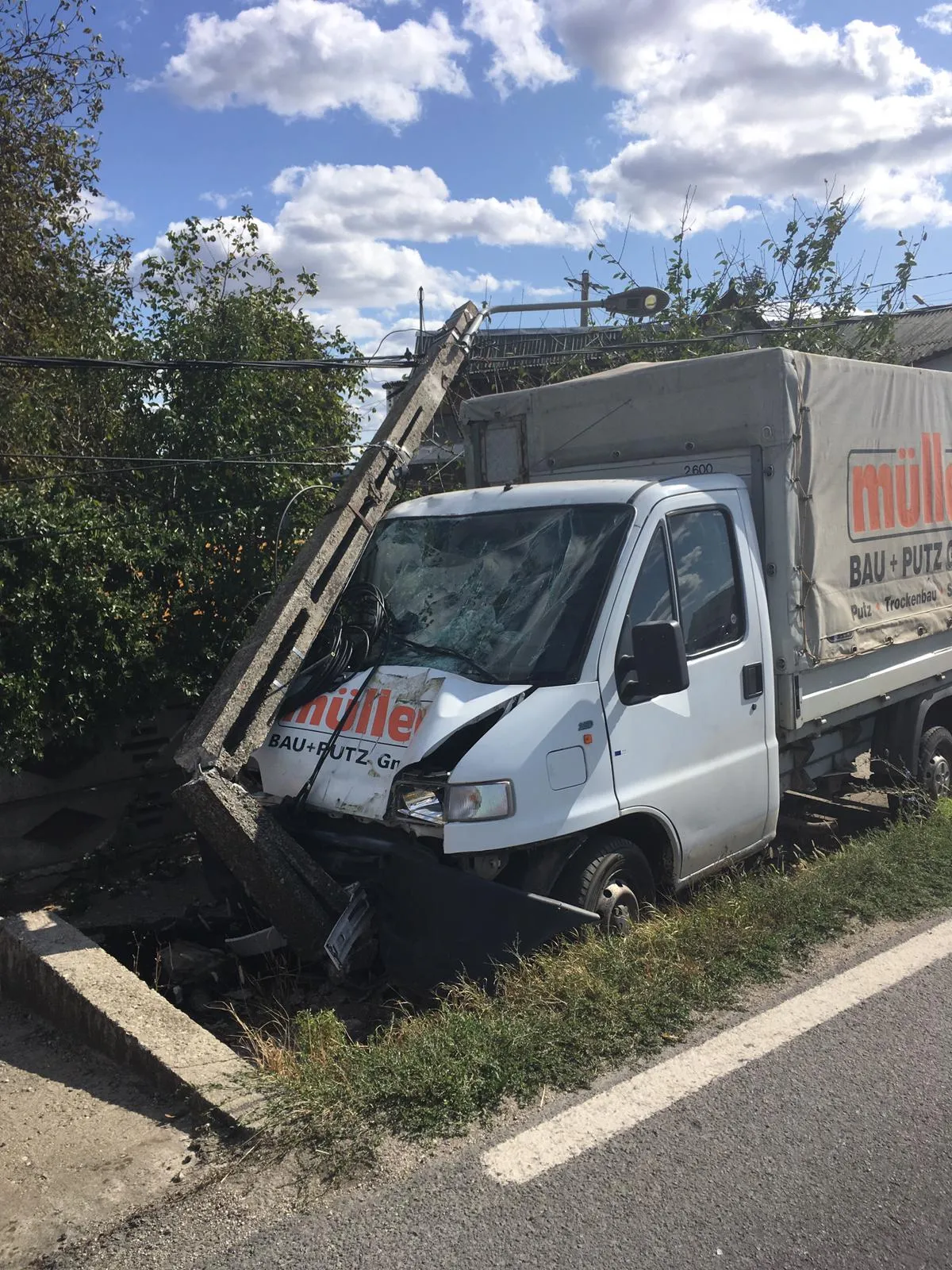 În urma impactului, autoutilitara a fost proiectată într-un stâlp de electricitate, pe care l-a rupt.