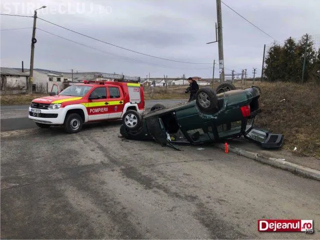 Accident cu o victimă, la ieșire din Apahida. Un șofer s-a răsturnat cu mașina VIDEO