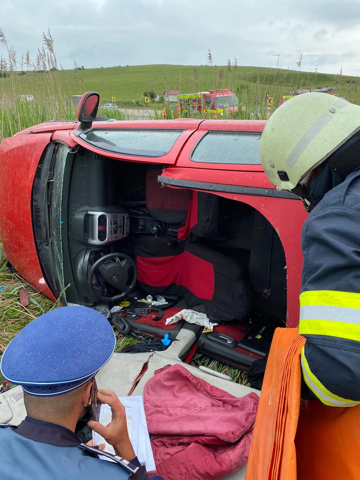 Din primele informatii, o conducatoare auto de 19 ani, din oraşul Teiuş, judeţul Alba, în timp ce se deplasa pe DN1 E60, din directia Turda spre Cluj-Napoca, nu ar fi adaptat viteza la conditiile de drum, a pierdut controlul asupra direcţiei de deplasare, parasind partea carosabilă.