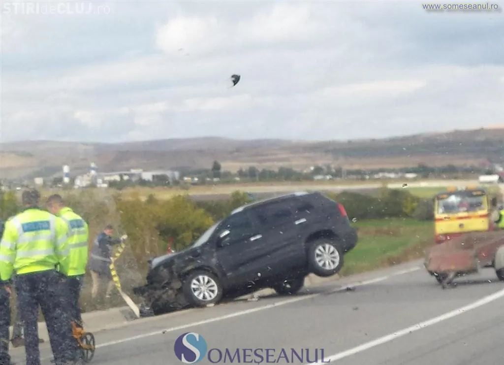 Conform polițiștilor, un autoturism de culoare roșie mergea dinspre centura Vâlcele-Apahida spre Apahida, a pătruns pe contrasens și s-a izbit violent de mașina de teren.