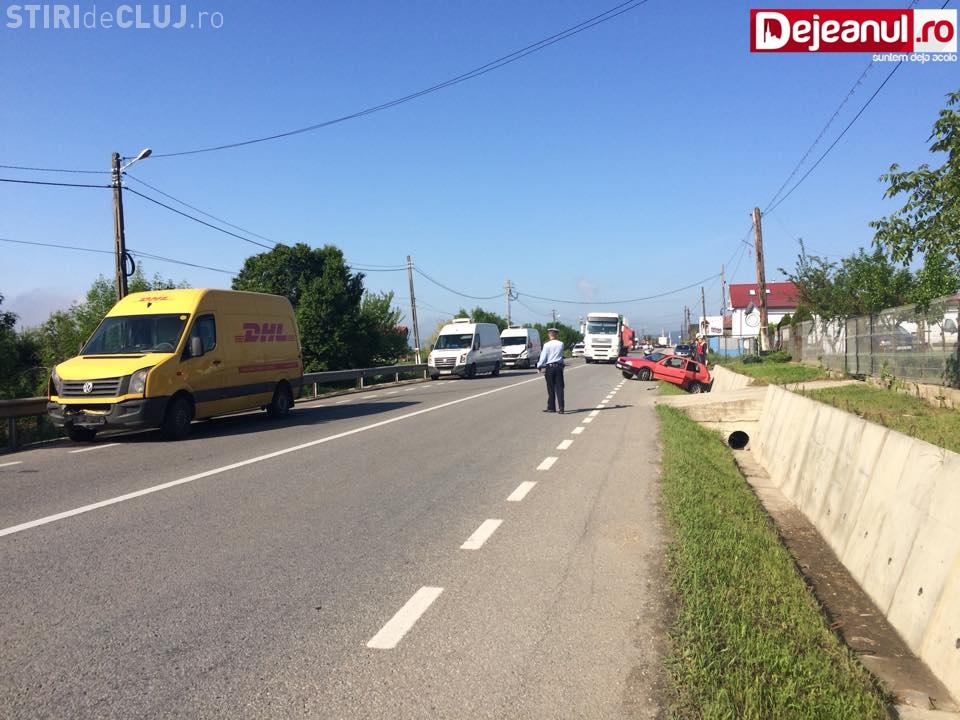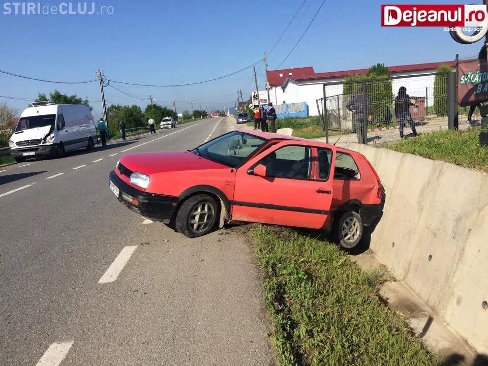 Soferul unui VW Golf care circula dinspre Dej inspre Bistrita a semnalizat stanga pentru a intra in curtea unei spalatorii auto. In acel moment, soferul unei autoutilitare s-a angajat intr-o depasire neregulamentara si a lovit in plin Golf-ul. In urma impactului, masina mica a fost aruncata in sant, scrie dejeanul.ro.