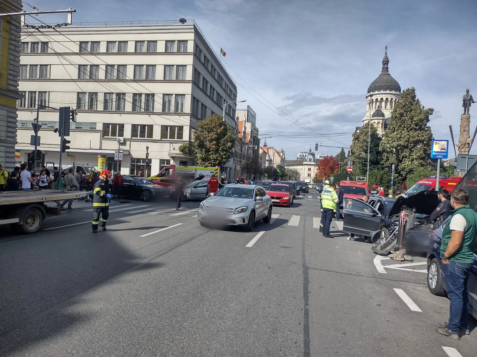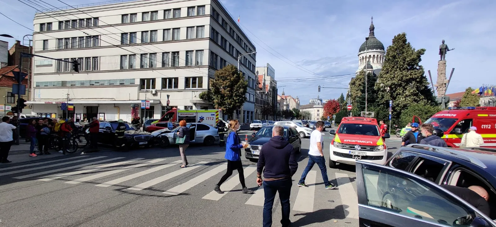 ISU Cluj a anunțat accidentul la ora 13.50. ”Azi, 1 octombrie, în jurul orei 13.45, polițiștii au fost sesizați pentru a interveni la un eveniment rutier produs la intersecția dintre Piața Avram Iancu și Bulevardul Eroilor.