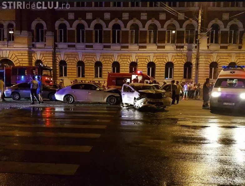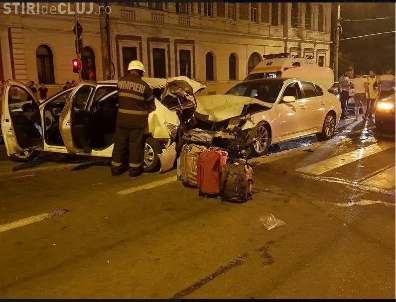Accident cu patru victime în centrul Clujului! Un șofer RUPT de beat a intrat cu BMW-ul în plin într-un taximetru FOTO