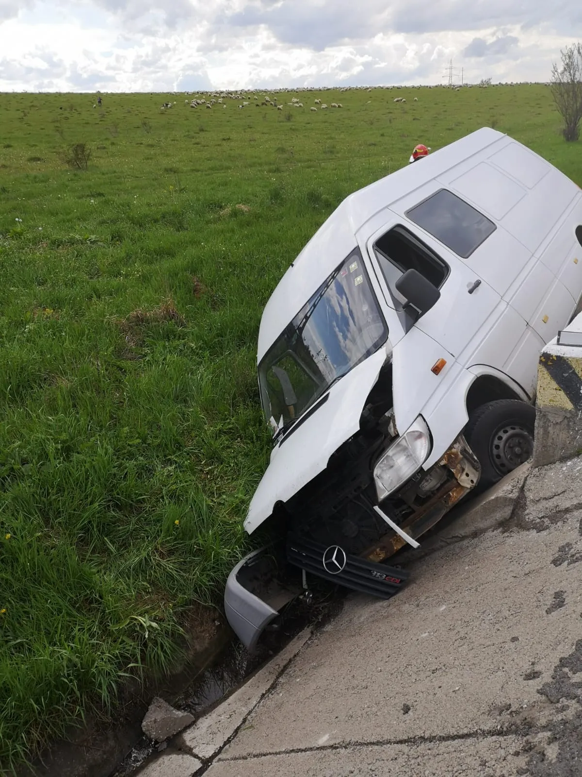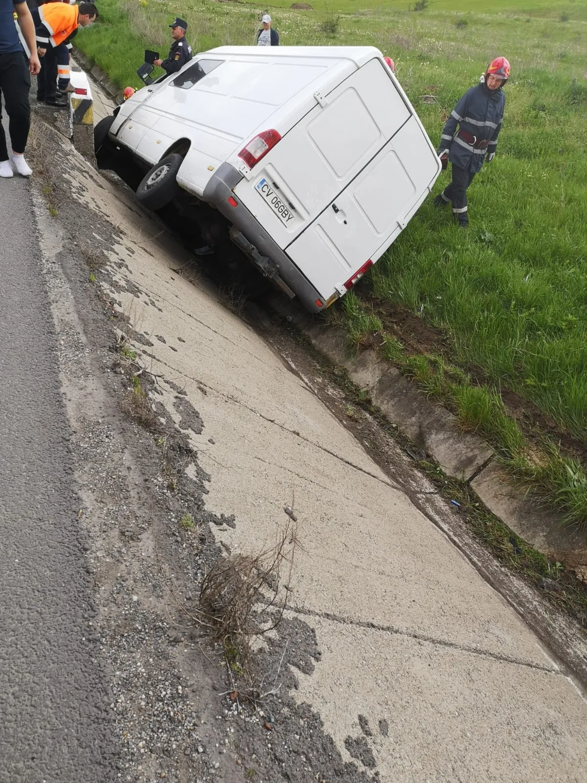 Din primele informații, șoferul unui microbuz a părăsit carosabilul și a ajuns în șanțul de pe margenea drumului.