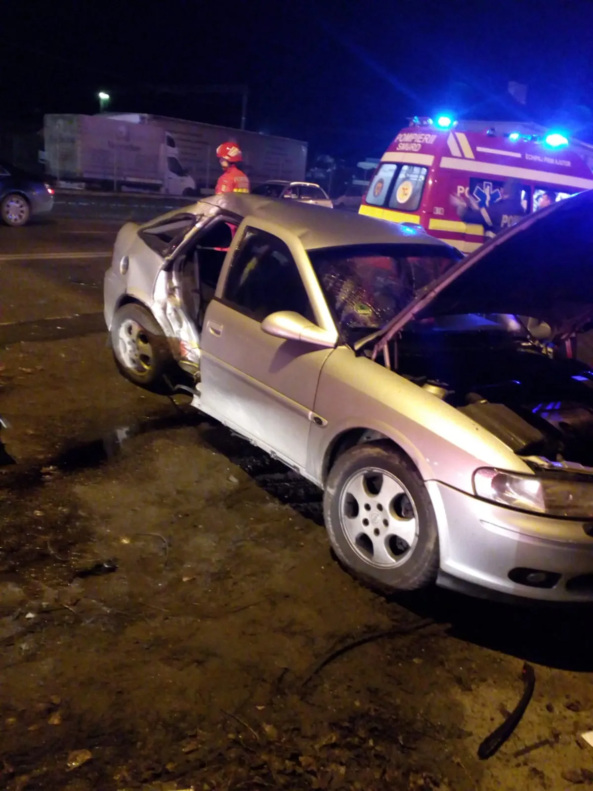 Accident cu patru victime la Dej. Un șofer s-a izbit cu mașina de stâlp FOTO
