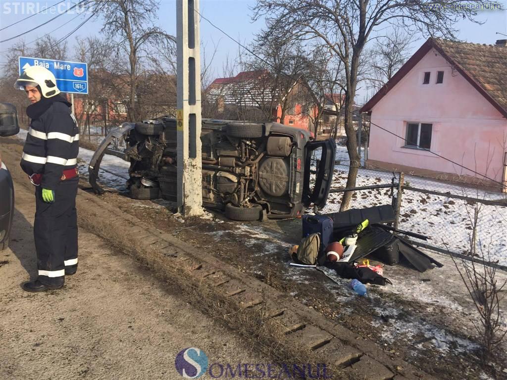 Accident cu patru victime la Iclod. O familie s-a răsturnat cu mașina VIDEO