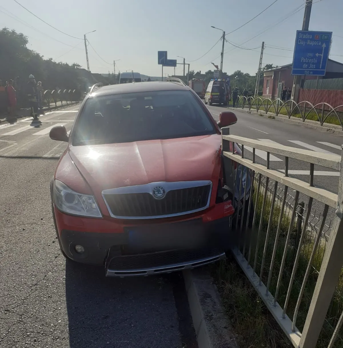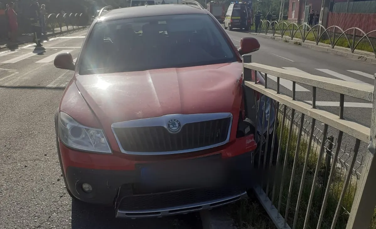 Un accident cu trei mașini s-a produs la Tureni, iar un autoturism a intrat în gradul de pe mijlocul drumului.