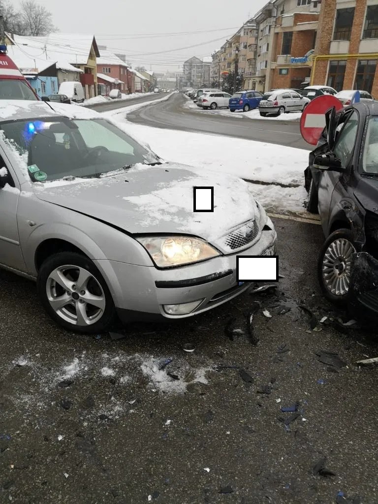 Un accident rutier, soldat cu rănirea a două persoane, a avut loc, duminică, la Dej, la inersecția străzilor 1 Mai cu I.P. Reteganul.