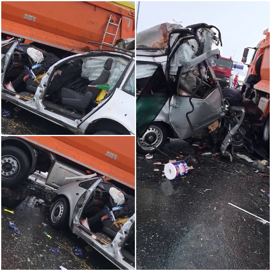 Accident cu trei morți la Sibiu, pe autostradă. Un autoturism a intrat sub mașina de deszăpeziri - VIDEO și FOTO