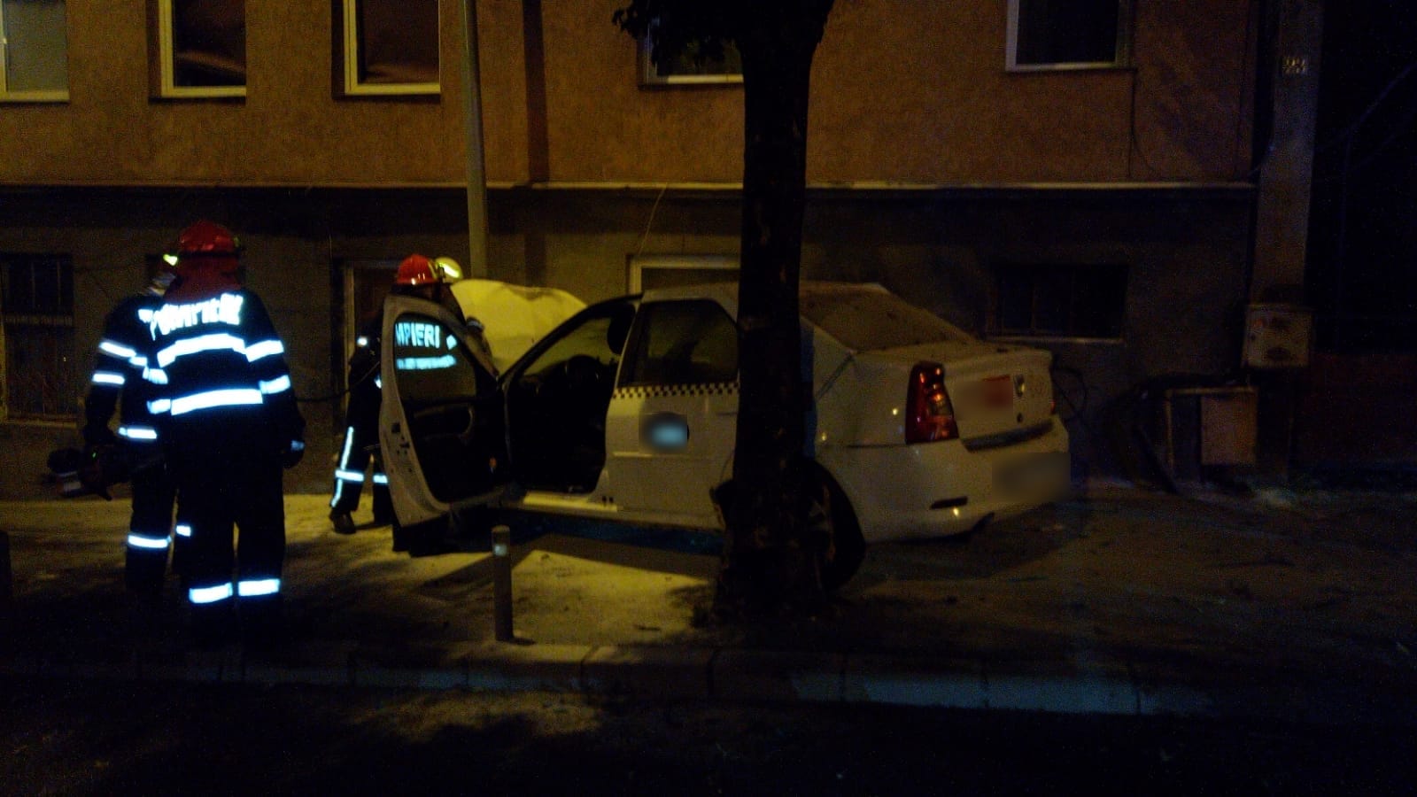 Accident cu trei victime pe Calea Turzii. Un taxi a ieșit de pe carosabil și a luat foc FOTO