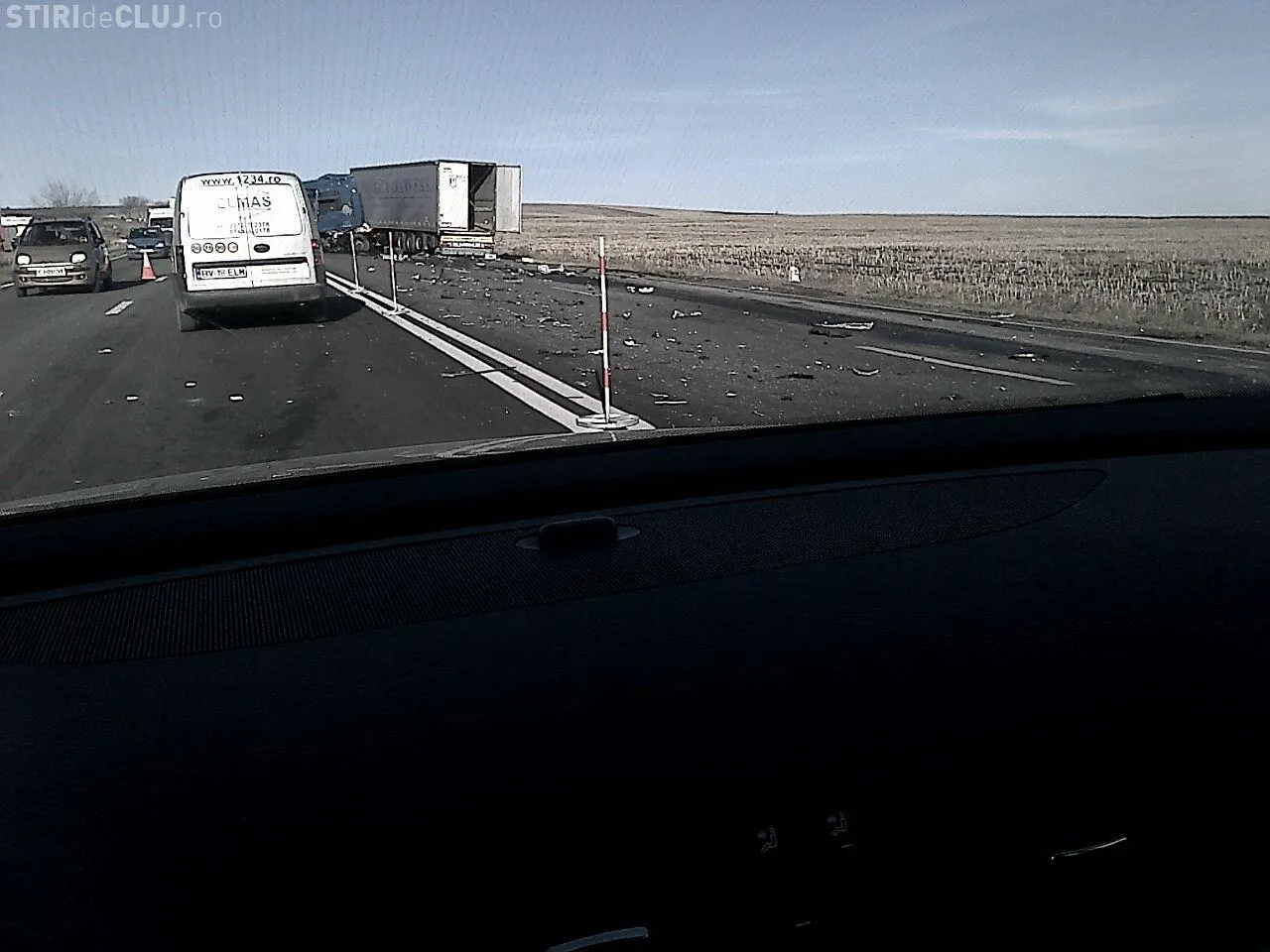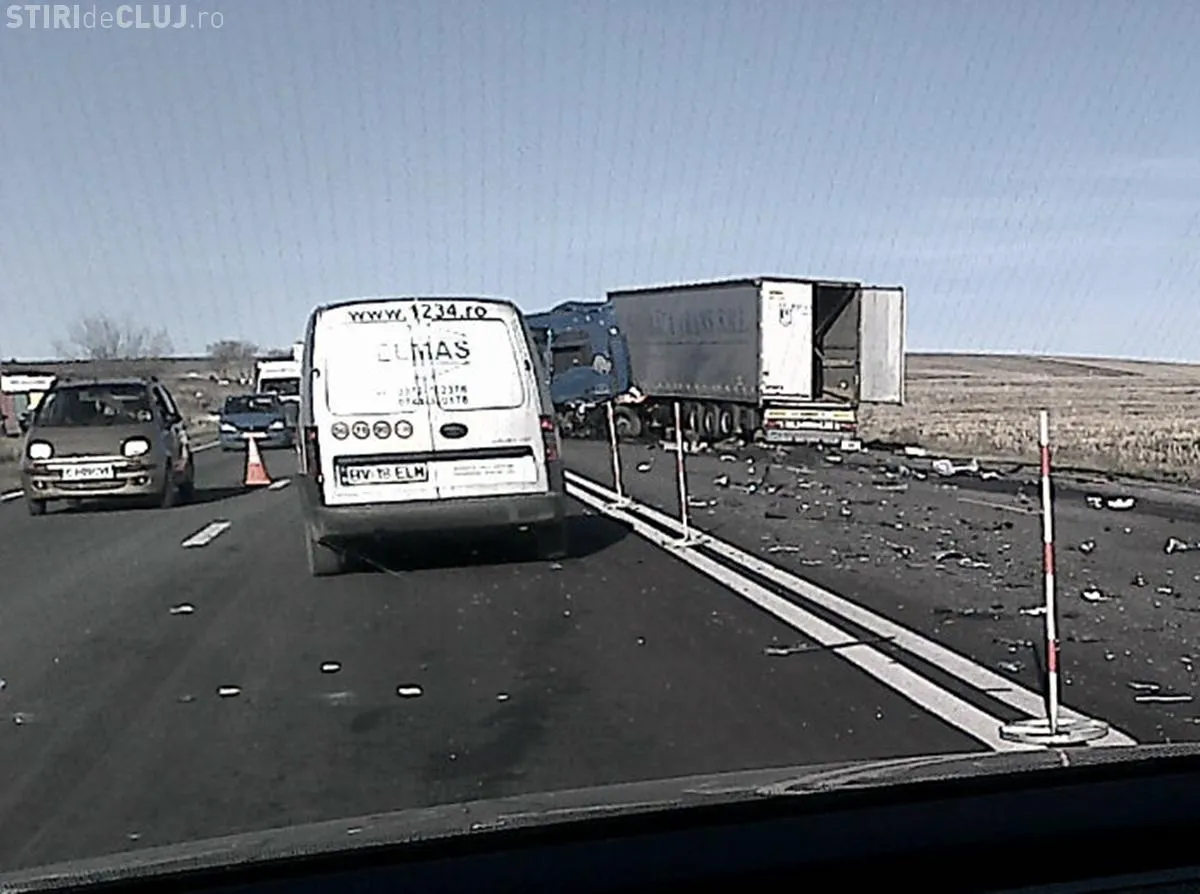 Accident CUMPLIT la ieșire din Turda! Șoferul unui Audi A6 a MURIT. A lovit un TIR și a zburat 100 de metri VIDEO și FOTO