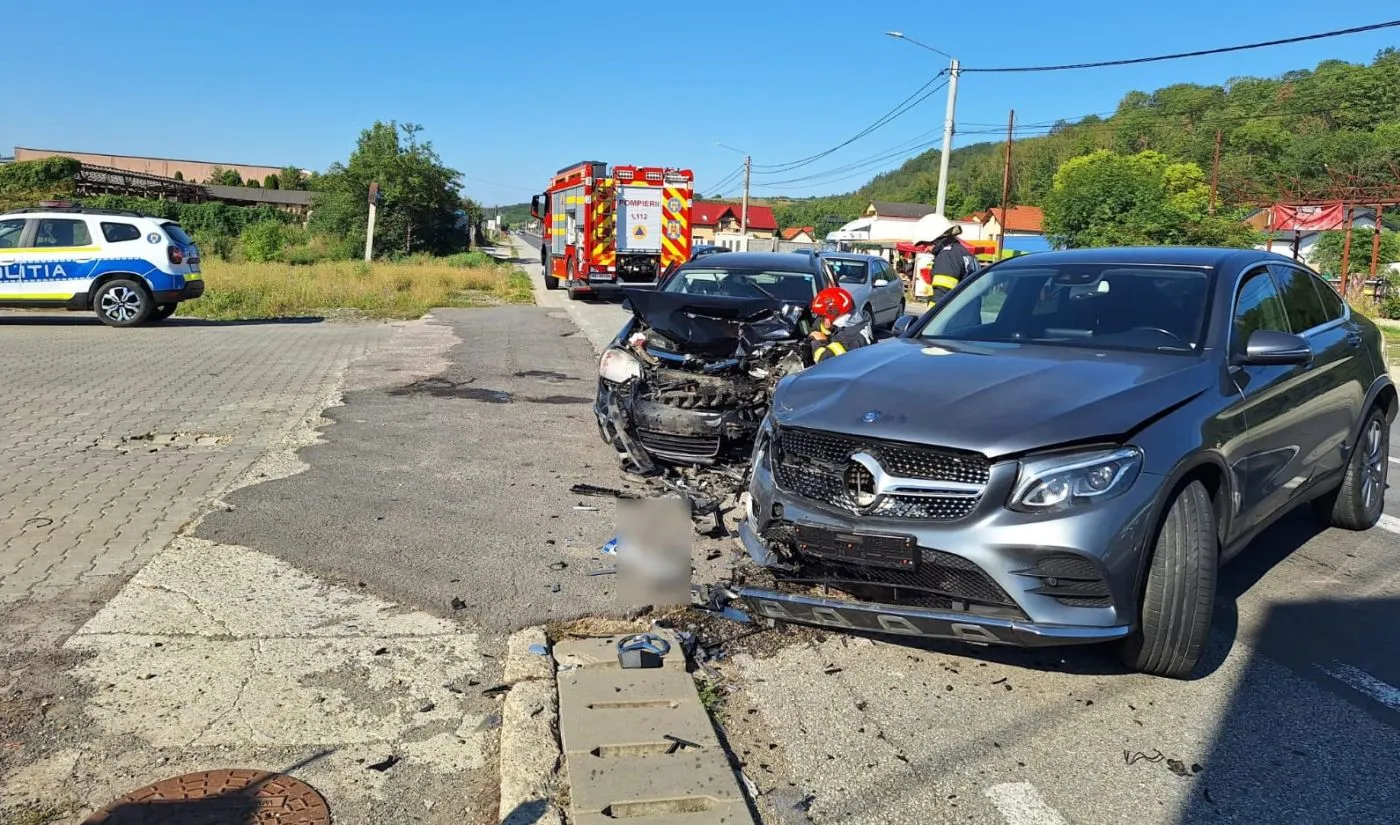 Accident cumplit pe un drum circulat din Cluj. Patru persoane au ajuns la spital, daune semnificative pentru un SUV Mercedes
