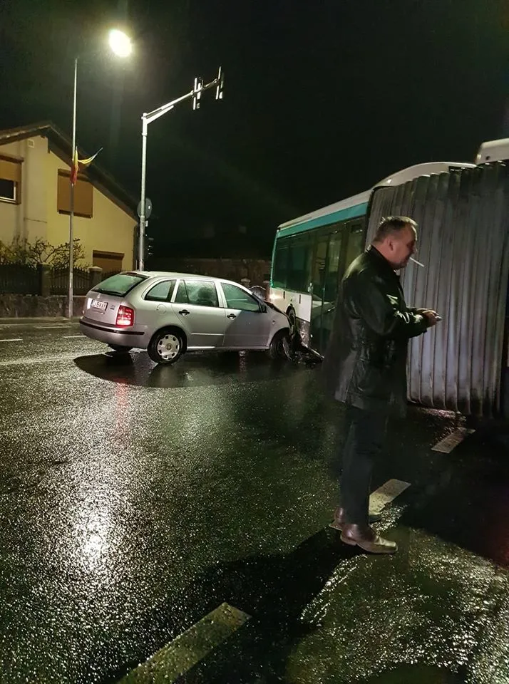Autoturismul a intrat în autobuz, în partea din spate, când mijlocul de transport în comun efectua un viraj, pentru a intra pe o stradă lăturalnică. Martorii spun că autoturismul avea culoare verde la semafor, dar este ciudat că nu a văzut autobuzul care efectua manevra.