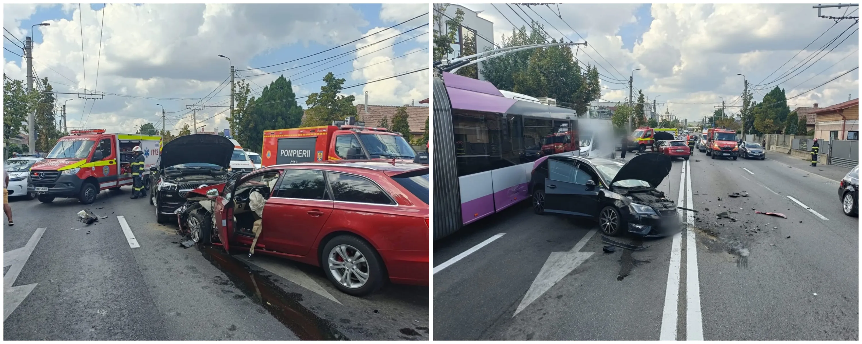 Un incident rutier a avut loc astăzi, după ce trei mașini și un troleibuz au fost implicate într-un accident pe strada Traian Vuia