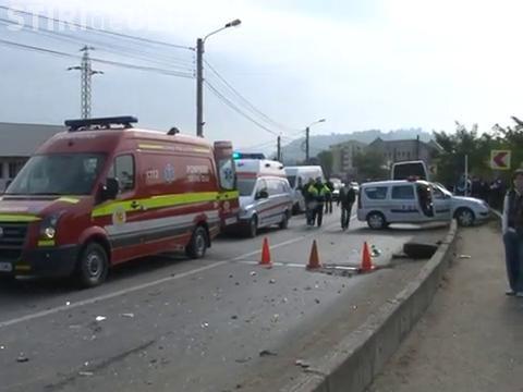 Impactul a fost violent si o roata a autoutilitarei a fost smulsa si masina s-a tarat circa 10 metri.