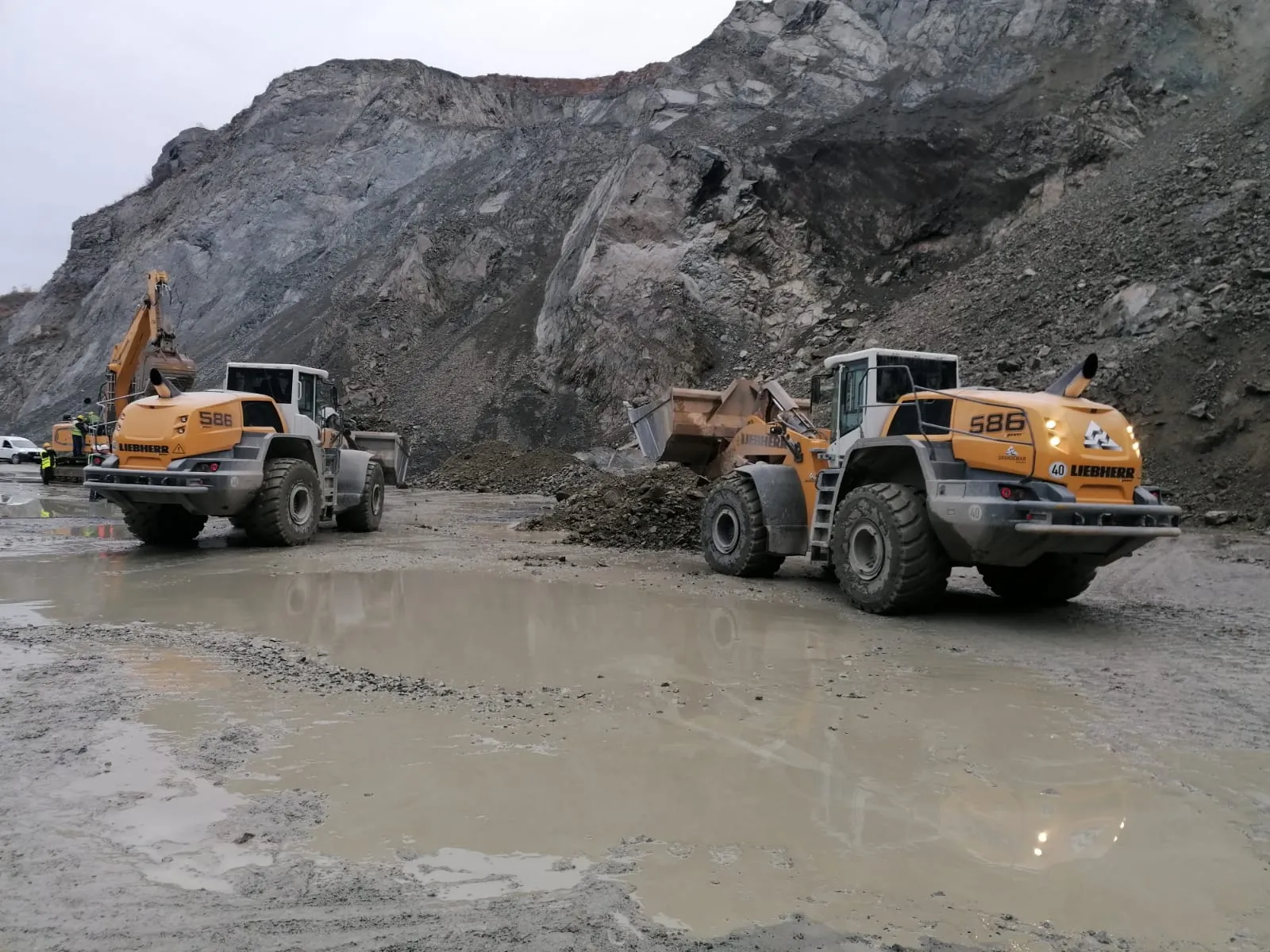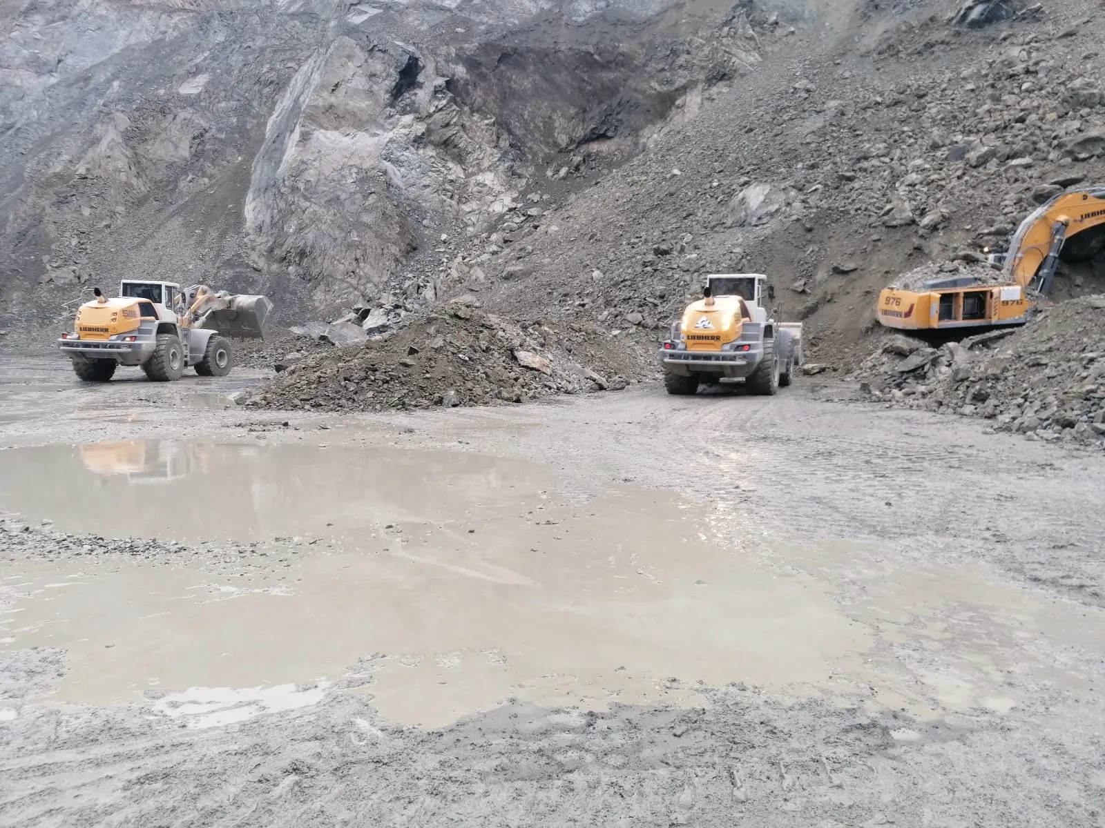 In acest moment se lucreaza cu 2 buldoexcavatoare pentru a se crea acces spre cabina utilajului surpins de pietre.
