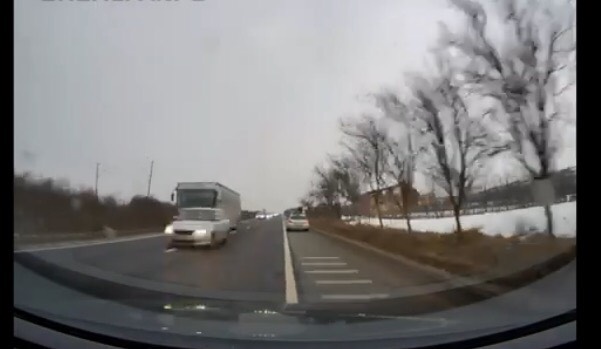 În imagini se observă cum un șofer extrem de grăbit, care circula cu un autoturism spre Gherla, a țâșnit la un moment din spatele unui autobuz care îl preceda. Șoferii care circulau din sensul opus s-au tras la o parte în ultimul moment, ca să facă loc grăbitului care încălca regulile de circulație. Cel puțin două mașini au virat puternic dreapta și chiar au ieșit de pe sensul lor de mers, pe acostamentul consolidat, pentru a evita o coliziune, notează gherla.info.