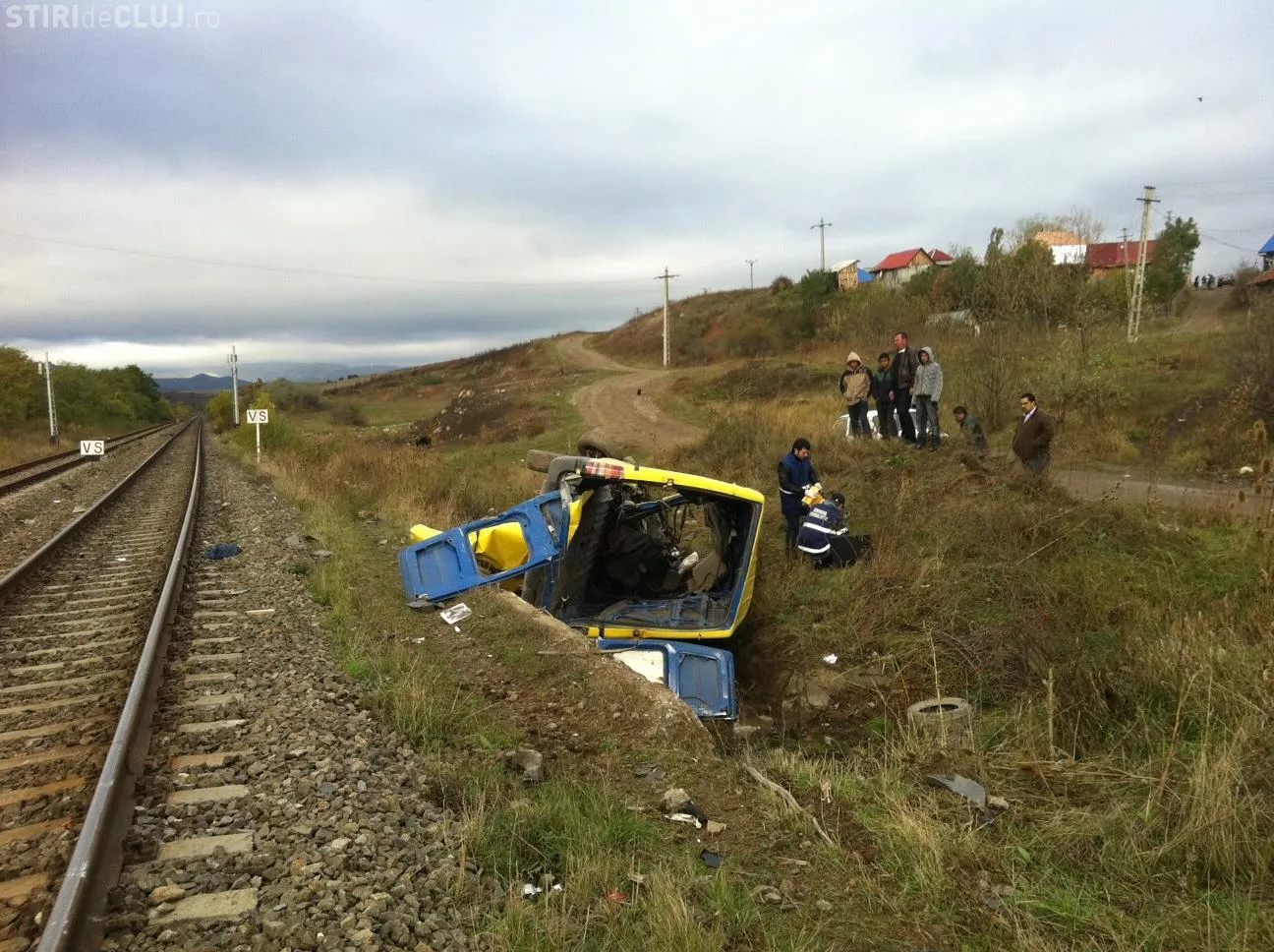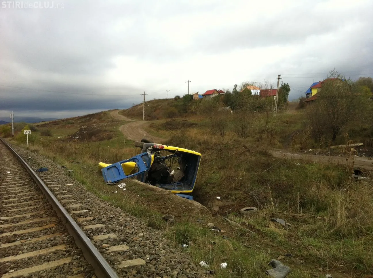 Accident feroviar în Huedin. Un tren a lovit in plin o dubă. Doi romi au murit în accident- FOTO / VIDEO EXCLUSIV