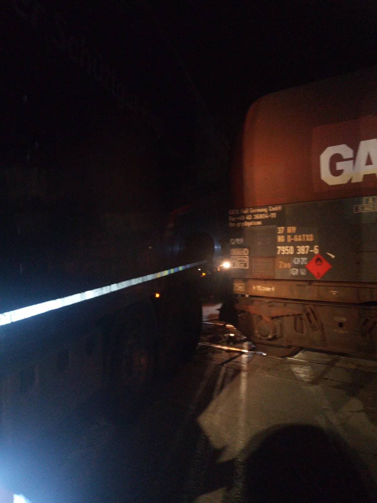 Conform ISU Cluj, două autospeciale au fost alertate în cursul nopții trecute pentru a asigura măsuri de prevenire a incendiilor, ca urmare a acroșării unei garnituri de tren, care transporta cisterne cu motorină, de către un autocamion, pe Calea Dezmirului din municipiul Cluj-Napoca.
