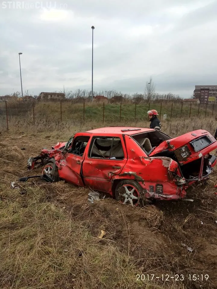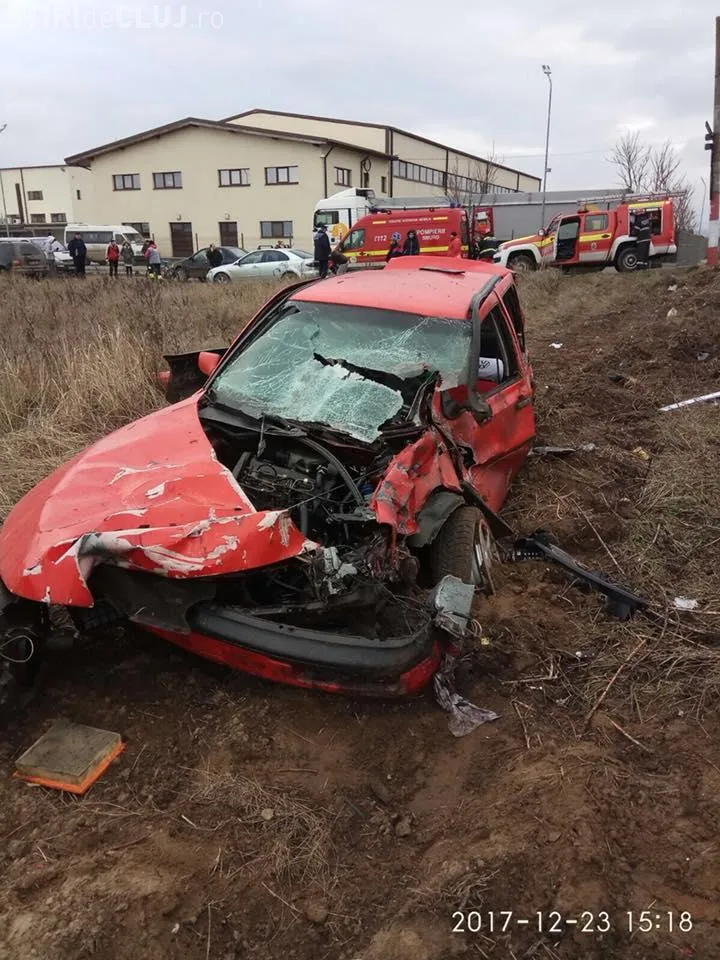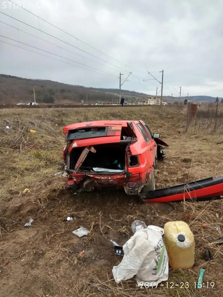 Accident feroviar la Jucu. O mașină a fost făcută praf de tren FOTO