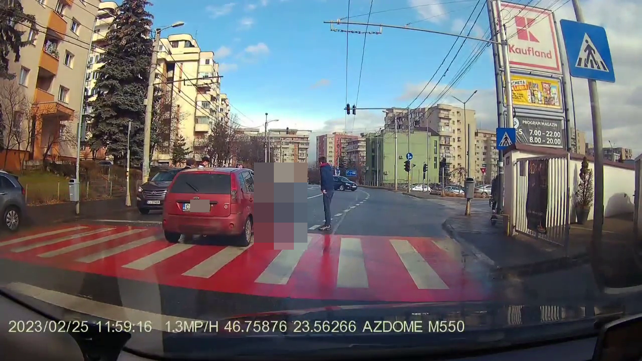 Accident filmat LIVE, în Cluj-Napoca. Bătrân de 78 de ani, lovit pe trecerea de pietoni - VIDEO