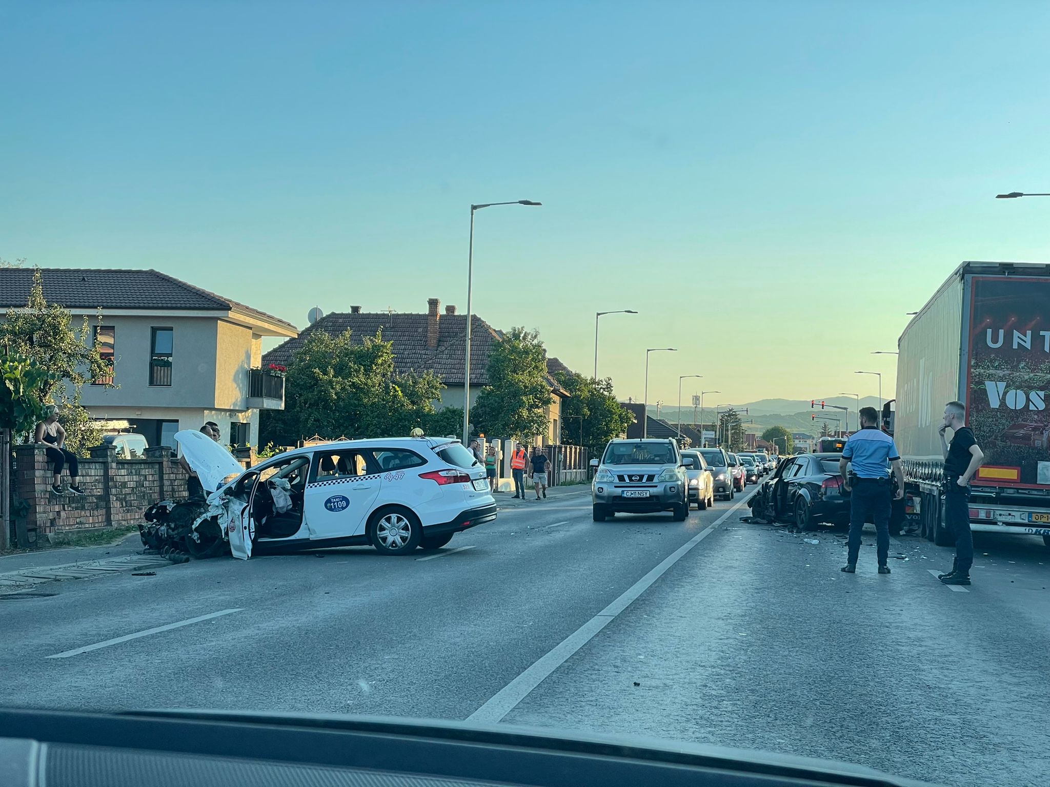 Accident grav, cu șase mașini implicate, produs pe strada Avram Iancu din Florești - FOTO