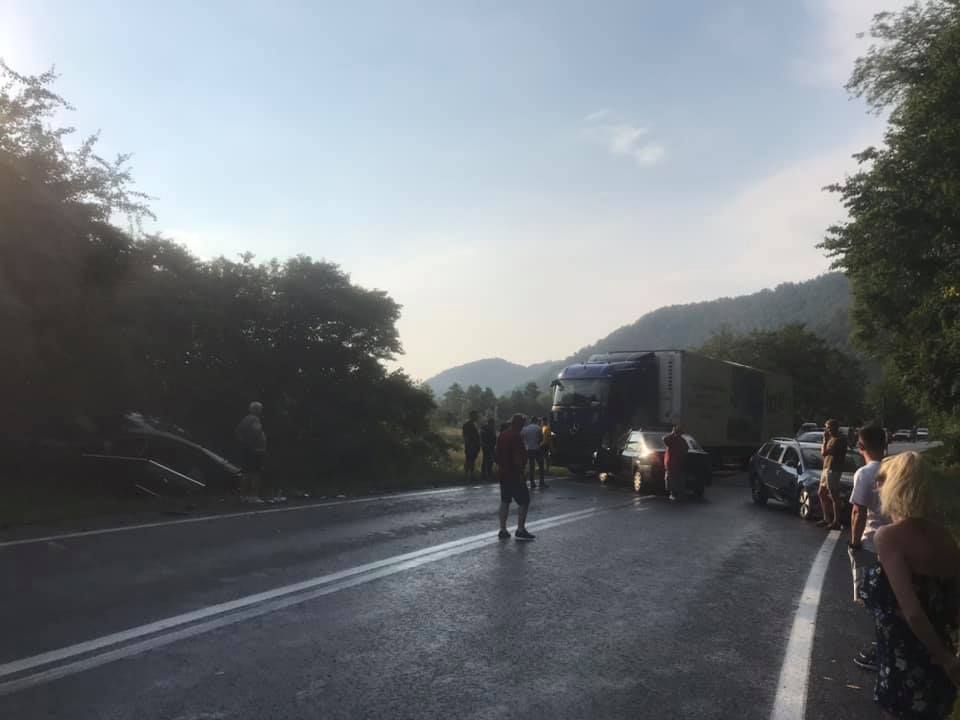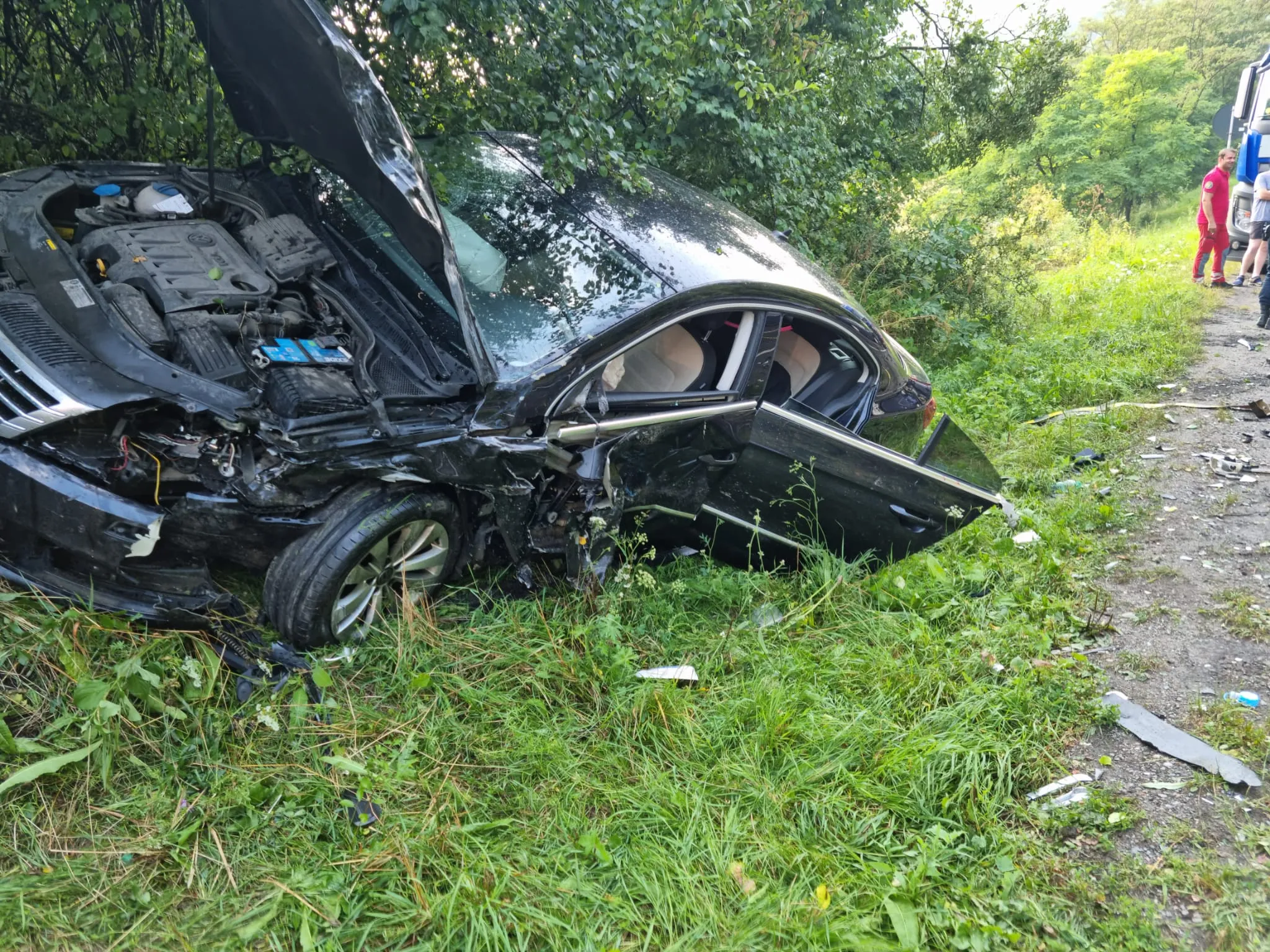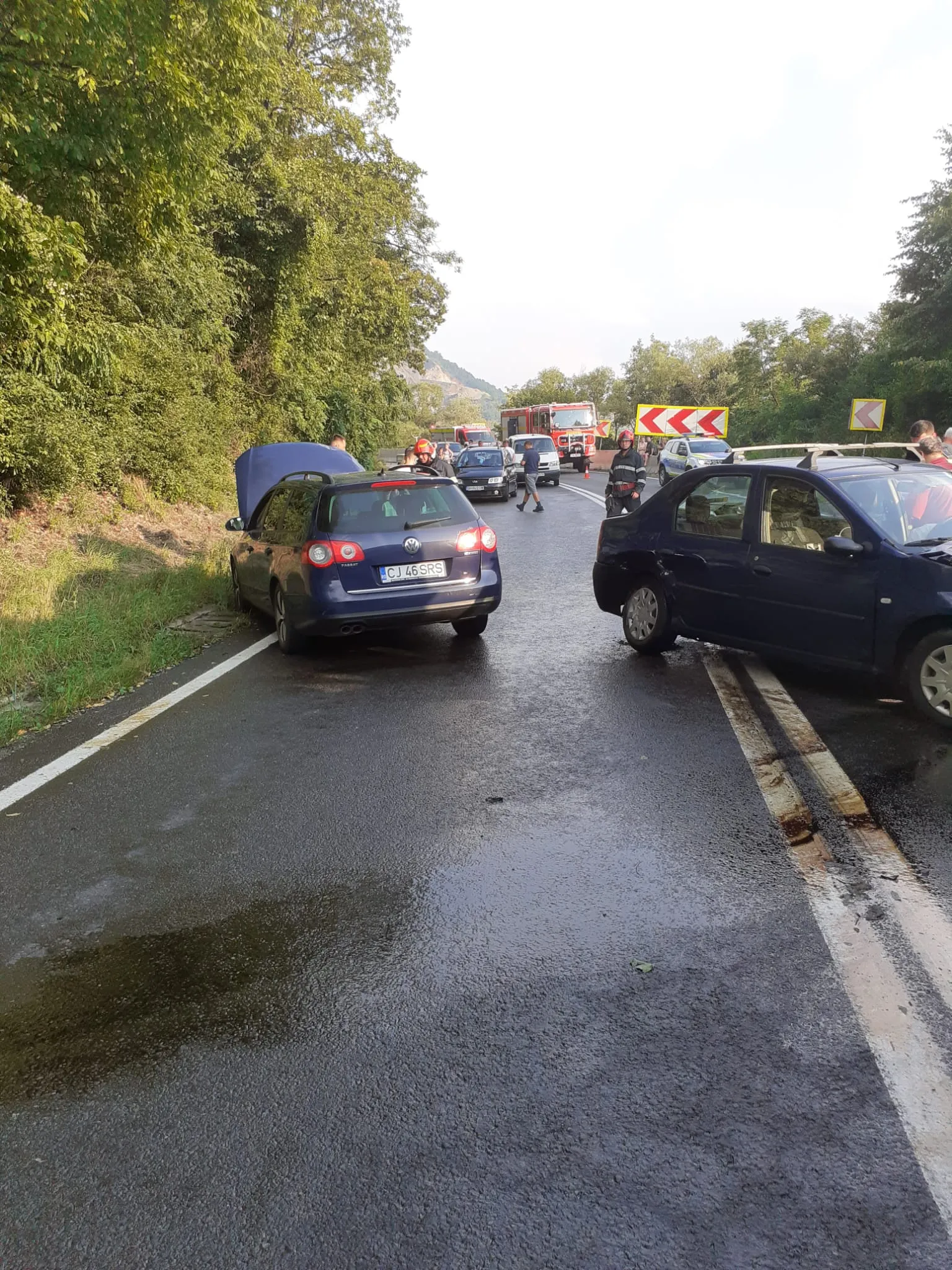 ”Domnul cu Loganul a alunecat după curba și a intrat pe contrasens in Passatul negru care a ajuns in șanț. Noi eram cu Passatul albastru după cel negru și am intrat și noi in Logan putin, in încercarea de a-l evita”, a precizat un șofer implicat în accident.