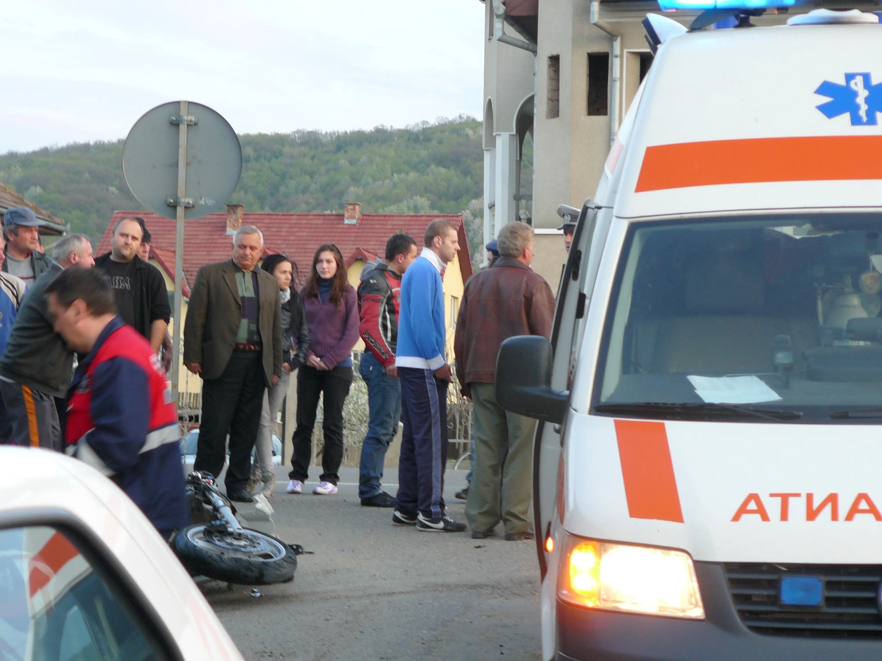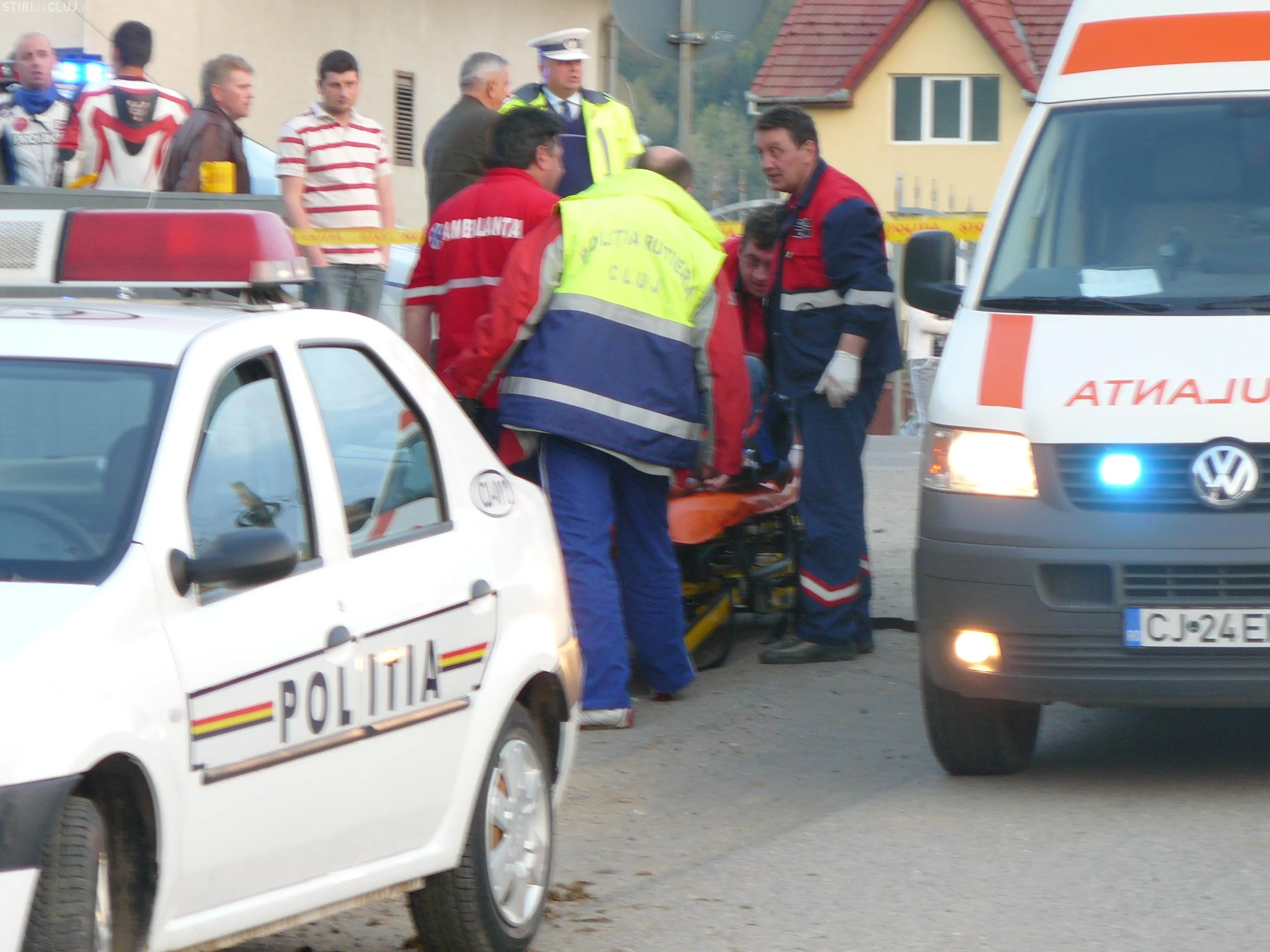 Accident grav la Gilau. Un motociclist fara permis a fost acrosat de o Dacie si a fost ranit grav - Galerie FOTO