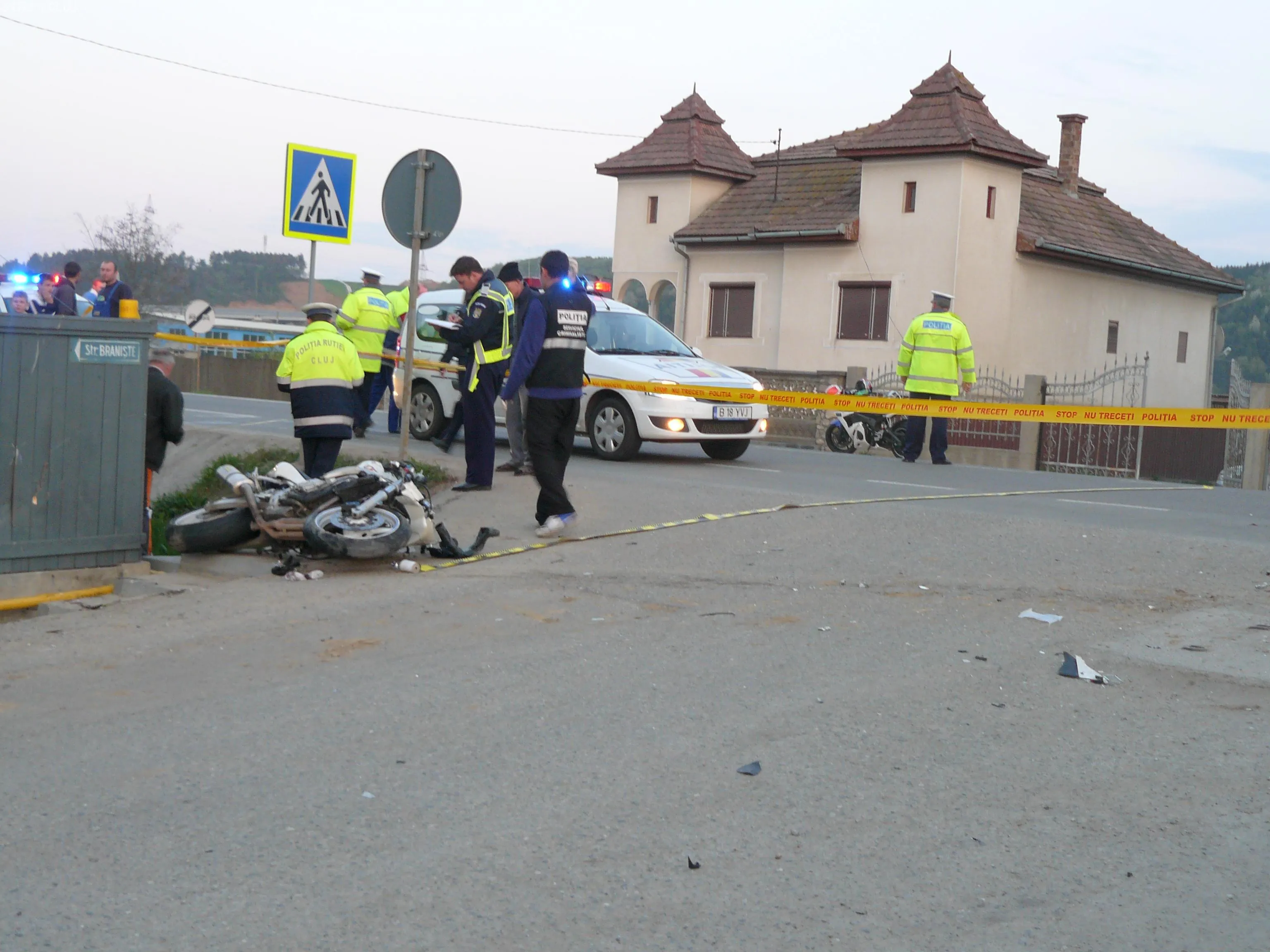 "Soferul Daciei nu a patit nimic, nici masina nu e lovita foarte tare. Motocicleta super sportiva, foarte puternica a fost distrusa. Motociclistul a fost proiectat in sant langa gard. Se putea misca, la un moment dat chiar a vrut sa se ridice, insa era plin de sange. Foarte probabil ca a scapat datorita costumului de protectie pe care il purta, care parea de asemenea profesionist", a mai declarat P.G.A..