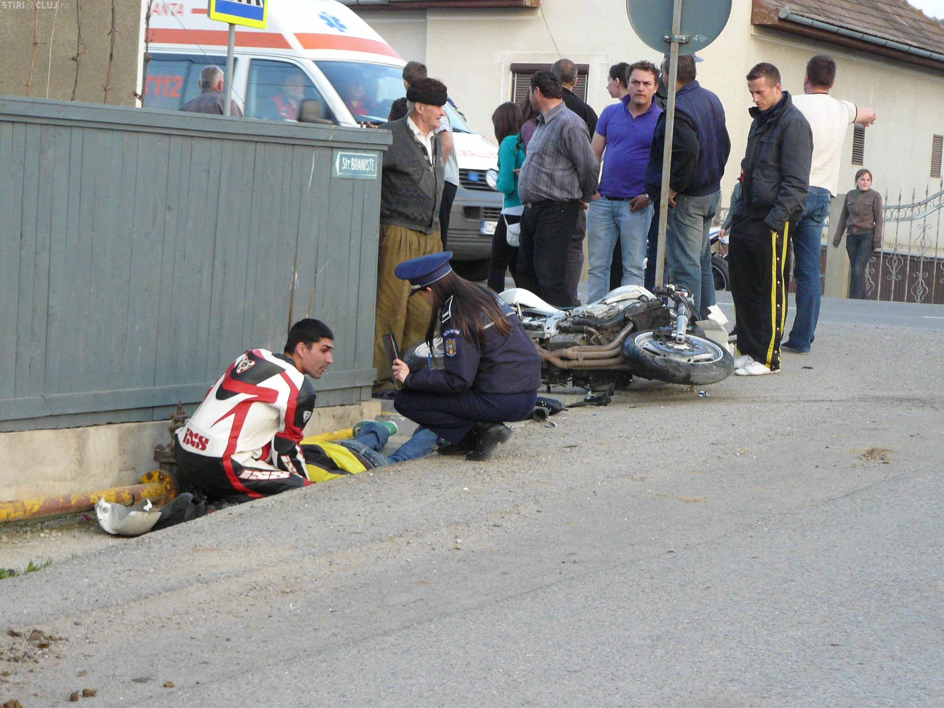 Un motociclist care nu avea permis de conducere a provocat sambata seara, in jurul orei 19.40, un accident grav de circulatie in comuna Gilau. "Bikerul" a fost ranit grav si a fost transportat la spital.