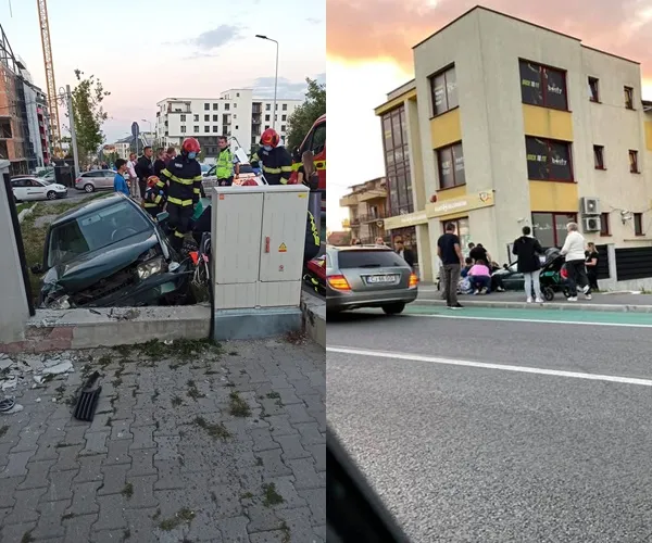 Accident grav în Bună Ziua, lângă BT! Un șofer inconștient a încercat să vireze stânga, iar un alt șofer a intrat într-un zid de beton - VIDEO
