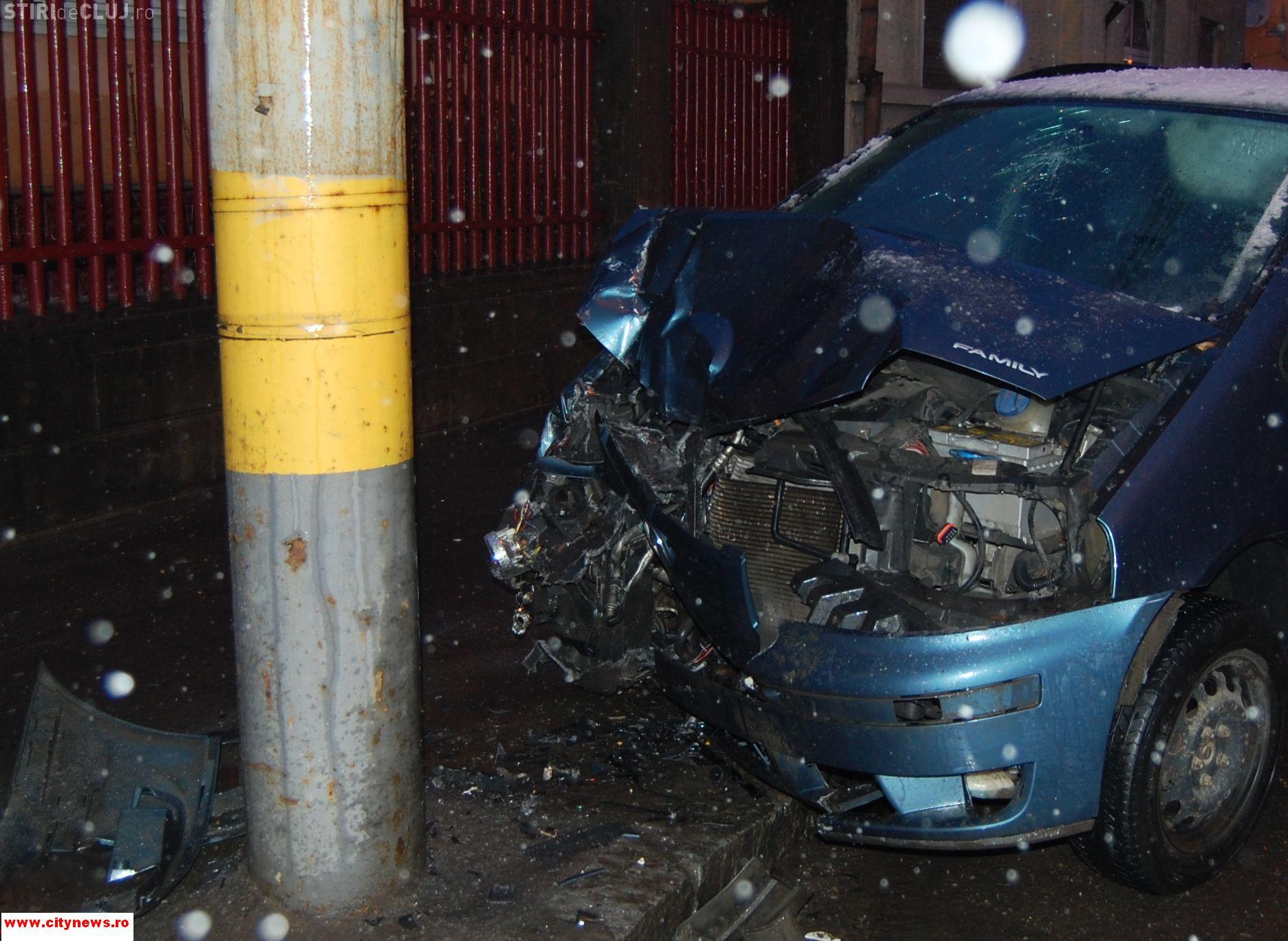 Soferul a inccercat sa depaseasca un alt autoturism si a pierdut controlul volanului si a intrat intr-un stalp.