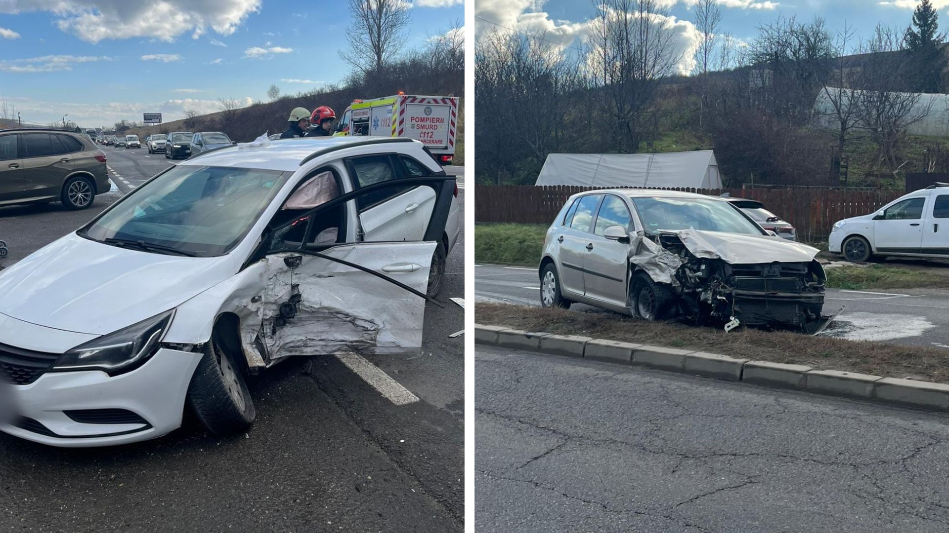 Accident grav în Cluj-Napoca! Impact violent în Vâlcele! Două femei rănite, pompierii au intervenit cu descarcerarea și SMURD