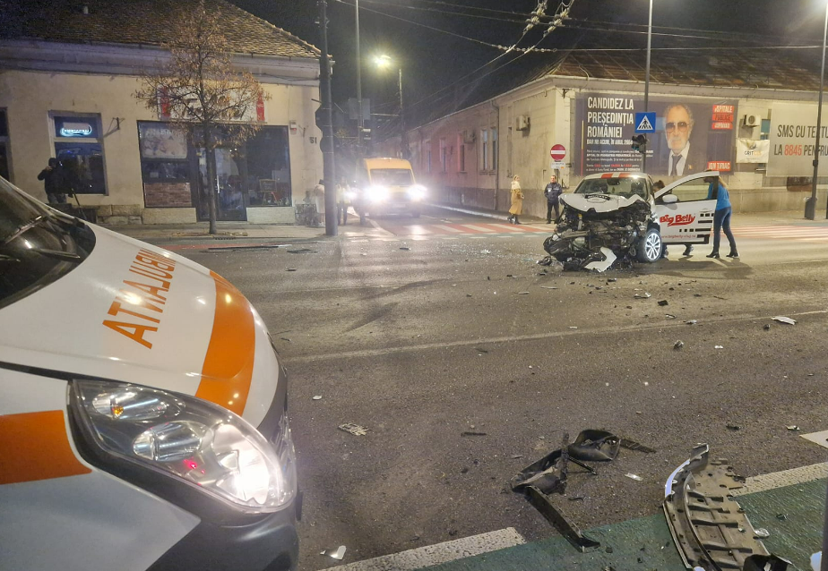 Pompierii Detașamentului 1 Cluj-Napoca intervin în aceste momente la un accident rutier care a avut loc pe Bulevardul 21 Decembrie, unde au fost implicate un autoturism, o ambulanță a Serviciului de Ambulanță Județean (SAJ) și un autobuz.