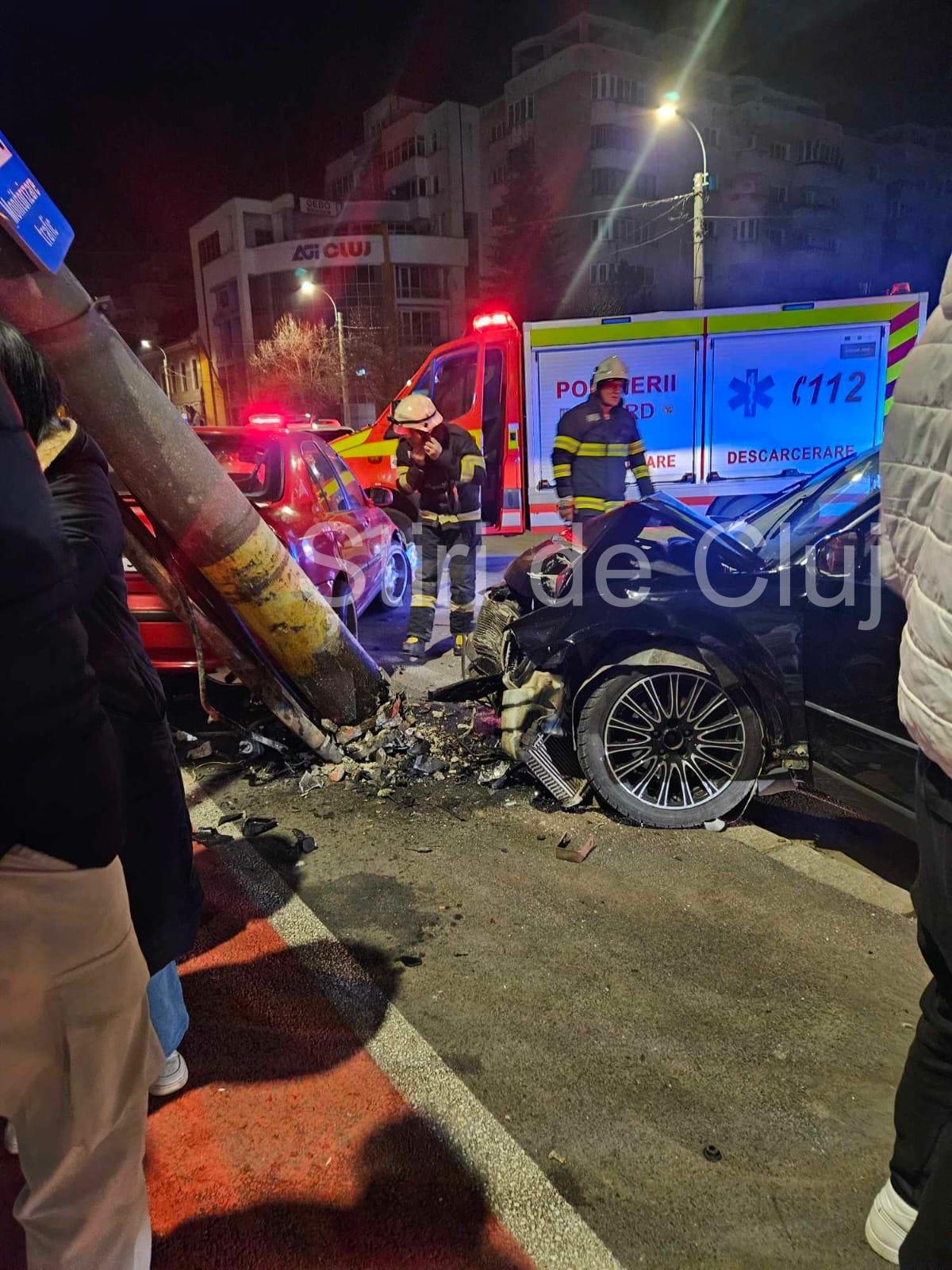 „Pompierii din cadrul Detașamentului 1 au intervenit noaptea trecută la un accident rutier petrecut pe Calea Dorobanților din Cluj-Napoca. Forțele operative au găsit la fața locului două autoturisme și un stâlp avariate. Din fericire, nu au existat victime încarcerate, iar un bărbat de aproximativ 25 de ani a fost transportat la spital pentru investigații suplimentare. La misiune au luat parte o autospecială cu modul de descarcerare și o ambulanță SMURD de terapie intensivă mobilă”, au declarat reprezentanții ISU Cluj.