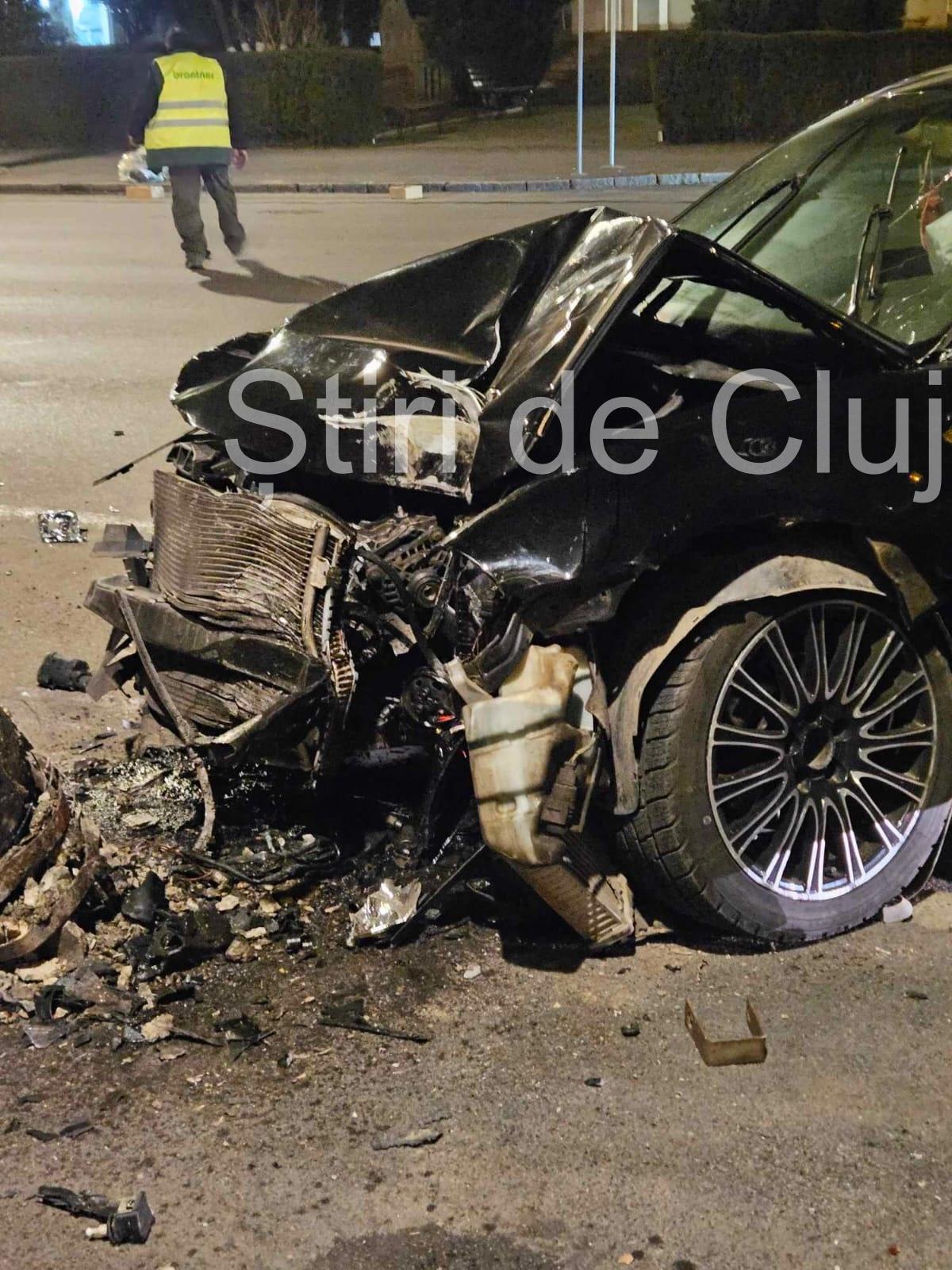 Accident grav în Cluj, pe Calea Dorobanților. Două mașini s-au ciocnit violent, iar una a rupt un stâlp de beton. Tânăr, rănit, dus la urgență VIDEO/ FOTO