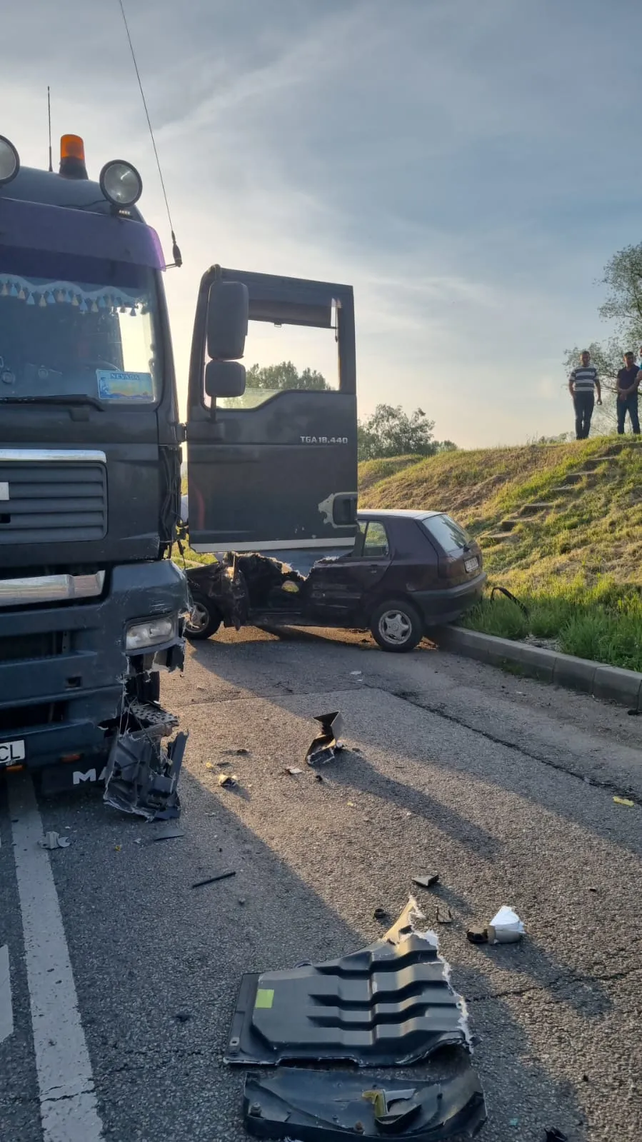 Din primele informații, coliziunea s-ar fi produs între un autoturism condus de un bărbat în vârstă de 85 de ani, din municipiul Dej și un ansamblu de vehicule, condus de un bărbat de 34 de ani, din județul Călărași.
