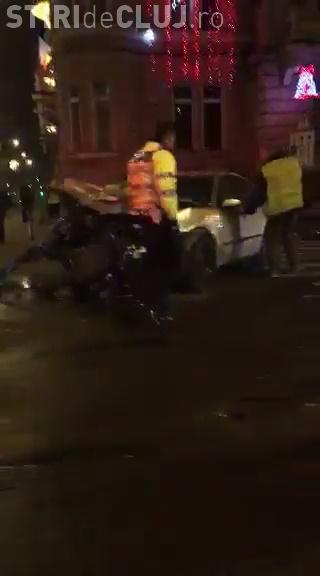 Accident GRAV în fața Prefecturii Cluj! O șoferiță a făcut prăpăd. A fost PROIECTATĂ pe trotuar - VIDEO