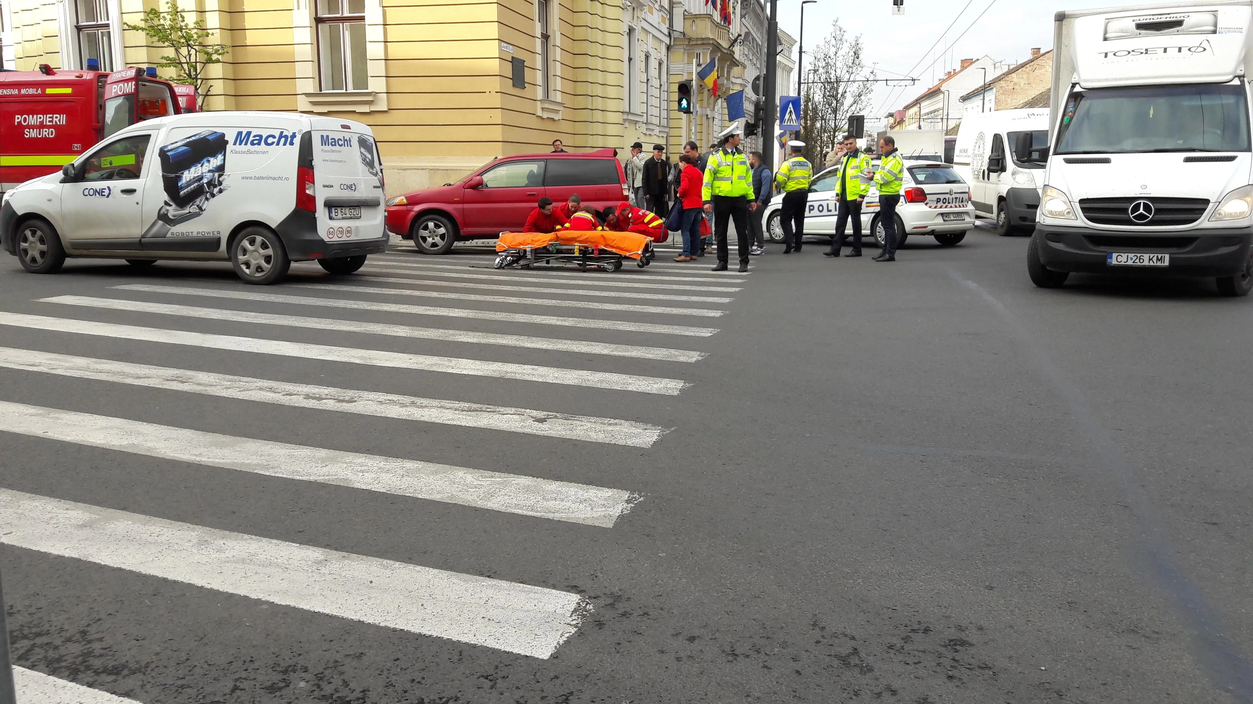 ”Conform primelor informații, un bărbat de 40 de ani, din Cluj-Napoca, în timp ce conducea un autoturism pe strada Moților, la efectuarea virajului spre strada Petru Maior, ar fi acroșat o femeie de 47 de ani, din Timiș, angajată regulamentar în traversarea străzii, pe culoarea verde a semaforului. Victima a fost transportată la UPU Cluj-Napoca pentru a i se acorda îngrijiri medicale”, a declarat purtătorul de cuvânt al IPJ Cluj, Carmen Jucan.