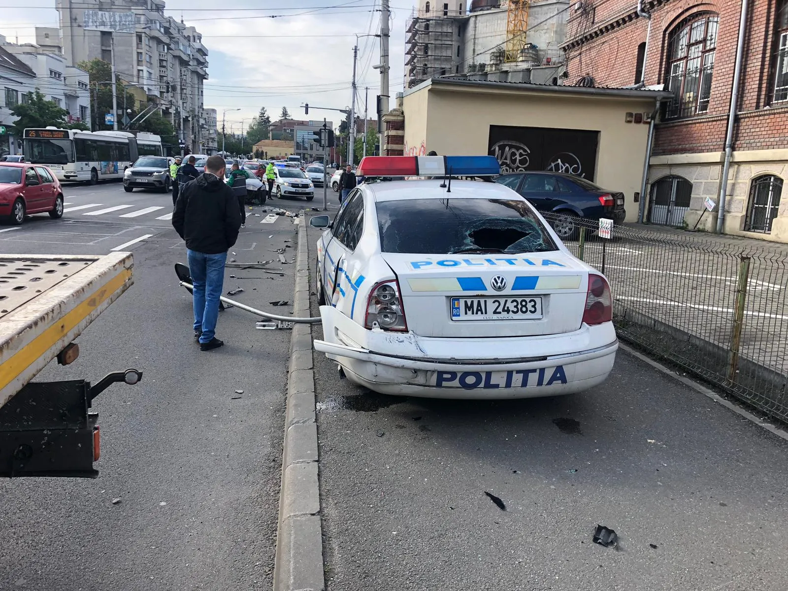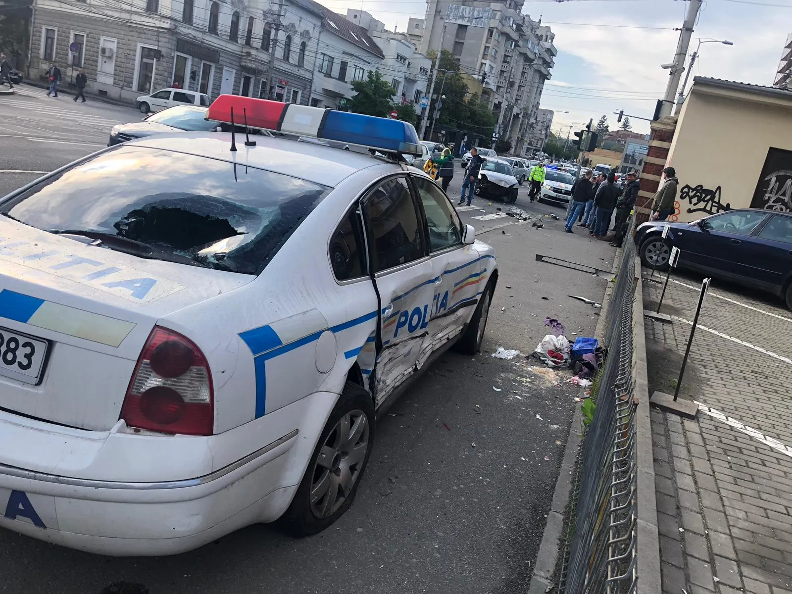 Conform primelor informatii, s-a produs o coliziune între o autospecială de poliție și un alt autovehicul la intersecția străzilor Traian Moșoiu și Piața Cipariu, din Cluj-Napoca.