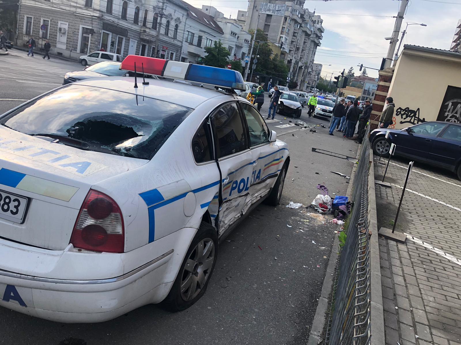 Accident grav în Piața Cipariu. A fost implicată și o mașină de Poliție FOTO
